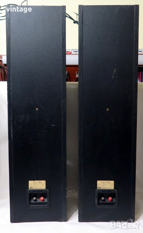 Трилентови, подовостоящи озвучителни тела, тип на конструкцията отворен обем с предно разположен фазоинвертор/басрефлекс. Отлични технически, много добър външен вид. Приложените снимки и видео са реални!