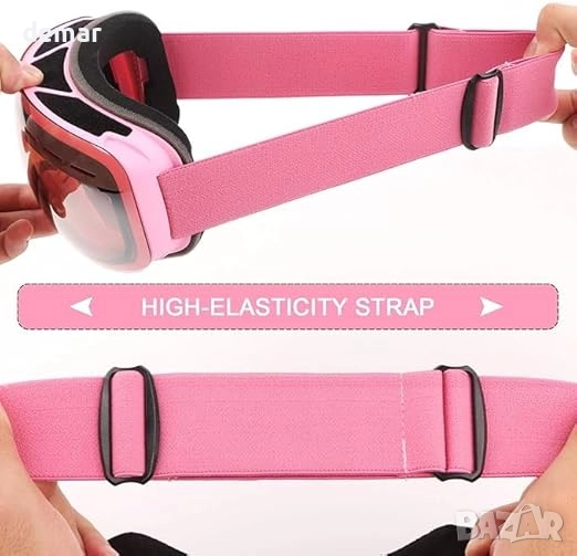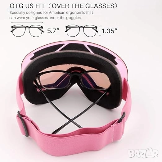 Очила за ски и сноуборд - UV защита, против замъгляване - OTG, розова рамка - светлорозови лещи