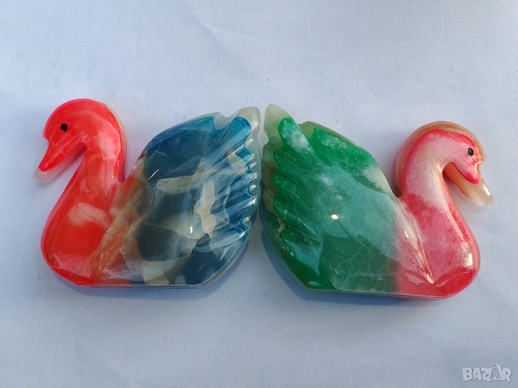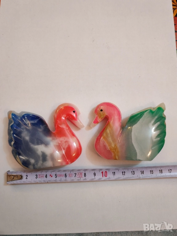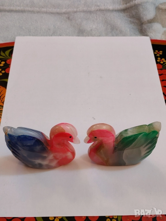 Статуетки два лебеда от цветен мрамор, отлично състояние, нямат забележки. Цената 85 лева е за двата броя. Еконт, Спиди, лично предаване. Телефон за връзка 0885776829.