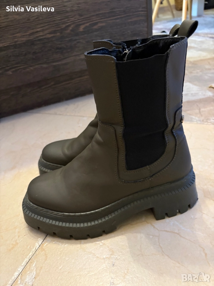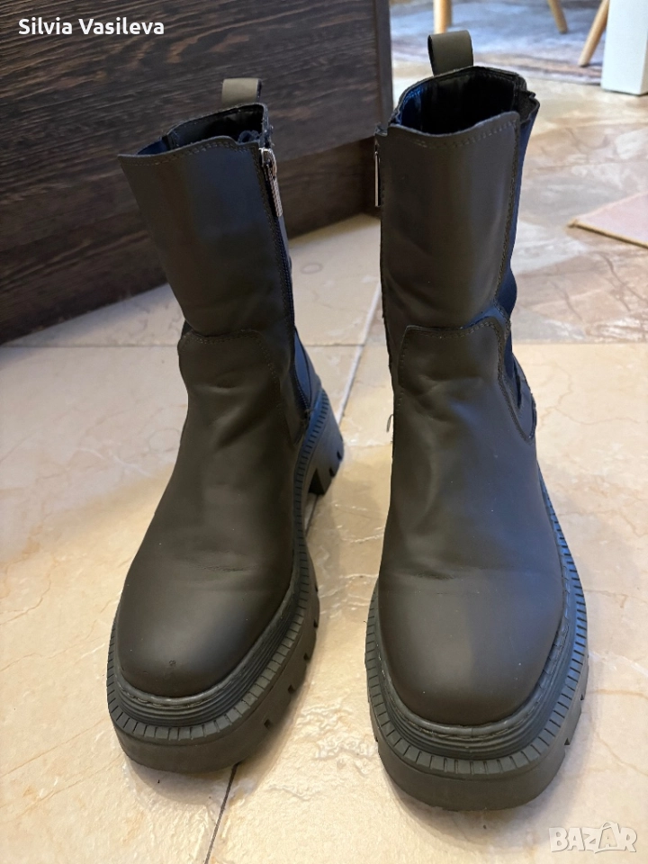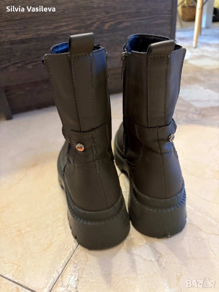 Дамски боти в маслинено зелено Nine West. Номер 37 с грайфер. Използвани са много малко без забележки в отлично състояние. Еко кожа