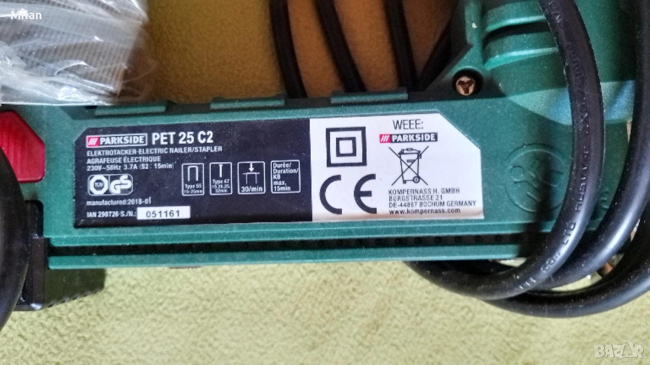 Нов Електрически такер Parkside → Обява 52444550