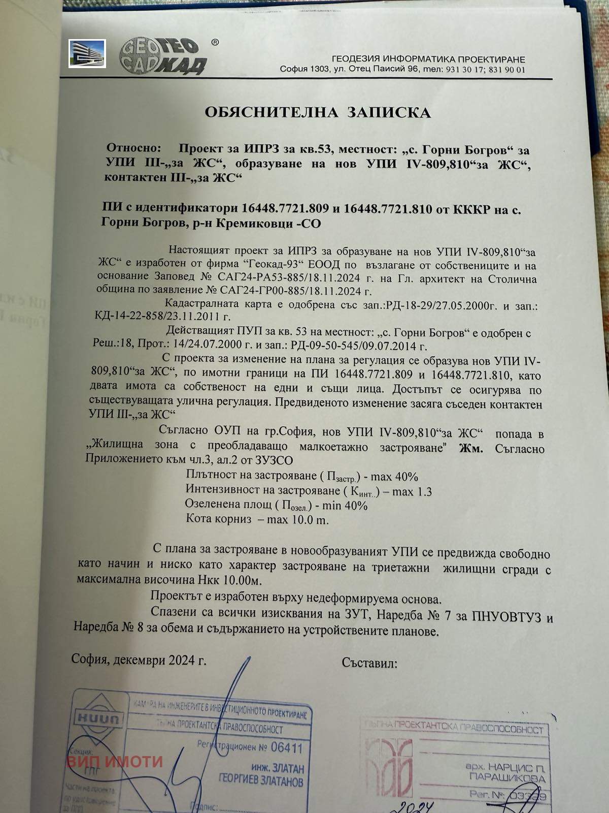 Продава ПАРЦЕЛ, гр. София, с. Горни Богров, снимка 1 - Парцели - 52445063 Продава ПАРЦЕЛ, гр. София, с. Горни Богров, снимка 2 - Парцели - 52445063 Продава ПАРЦЕЛ, гр. София, с. Горни Богров, снимка 3 - Парцели - 52445063 Продава ПАРЦЕЛ, гр. София, с. Горни Богров, снимка 4 - Парцели - 52445063 1/4