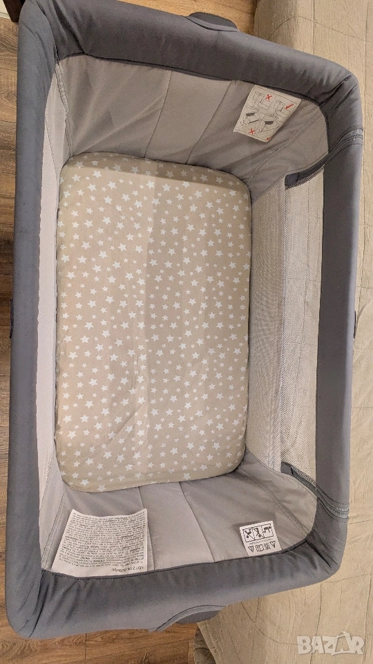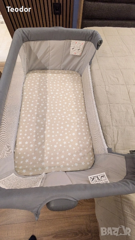 Падаща преграда: Миникошарата е снабдена с падаща/подвижна преграда, която позволява да бъде прилепена към родителското легло.