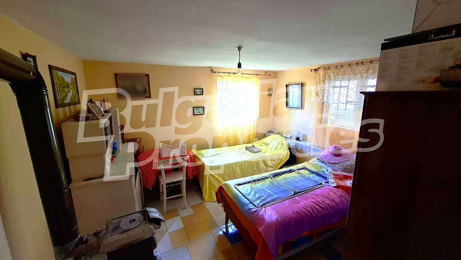 Имотът е с площ 86 кв.м и двор 840 кв.м, който излиза на две улици и е прекрасно поддържан с беседка, плодни дръвчета, озеленяване и пространство за паркиране. Районът е спокоен и екологично чист, подходящ за целогодишно живеене или ваканционно ползване.