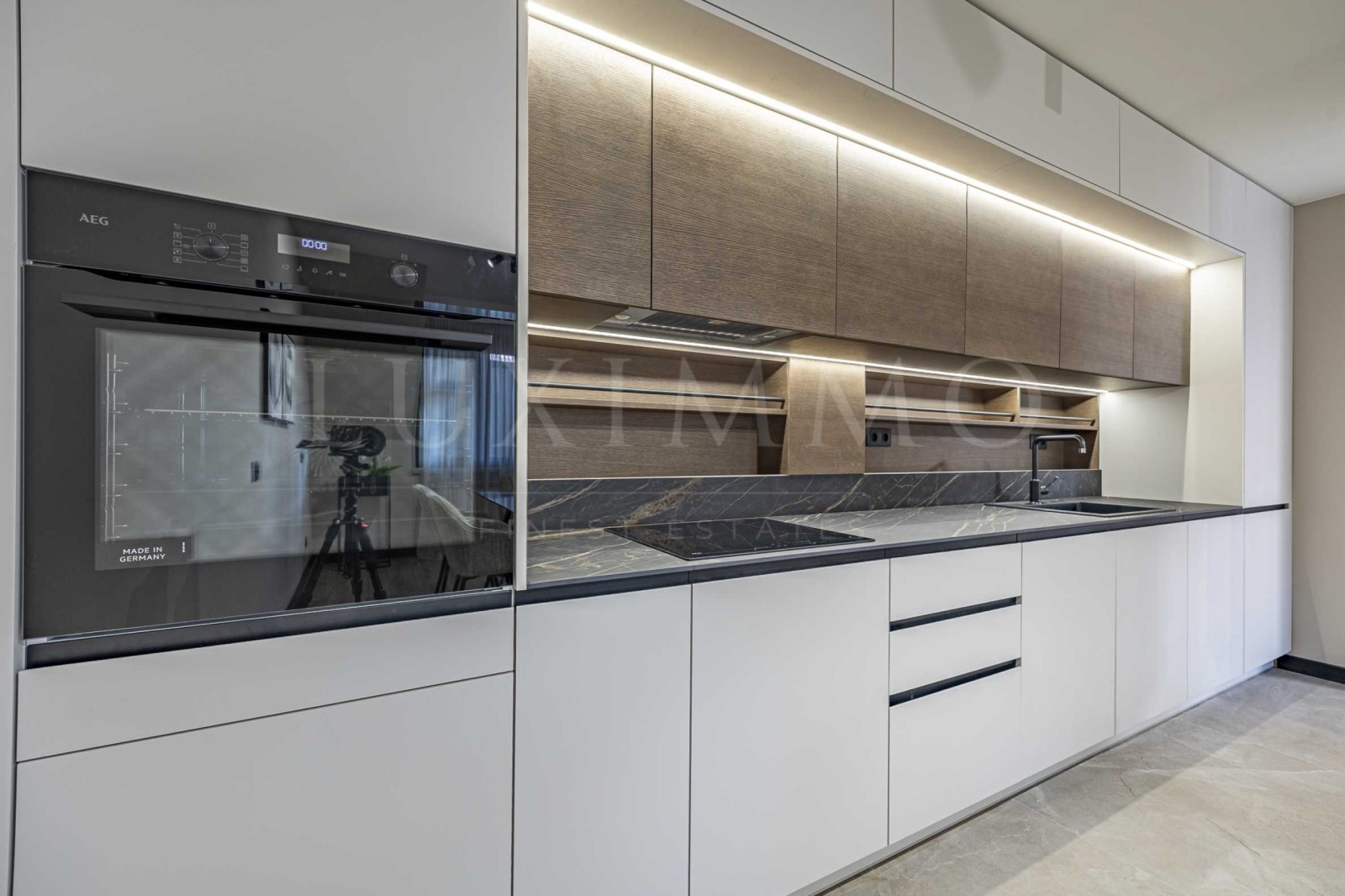 елегантна кухня с вградени електроуреди;