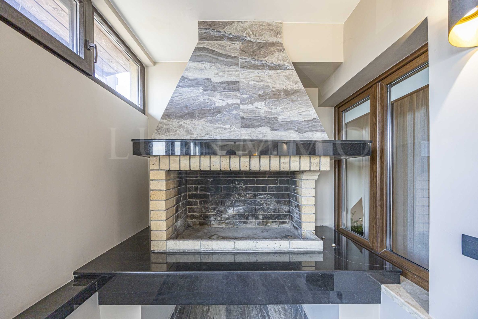 Апартаментът е елегантно обзаведен с дизайнерски мебели по поръчка. Разполага с модерна smart home система за осветление и отопление, която осигурява лесно управление, енергийна ефективност и допълнителен комфорт. А за топла и приятна атмосфера през студените месеци има камина.