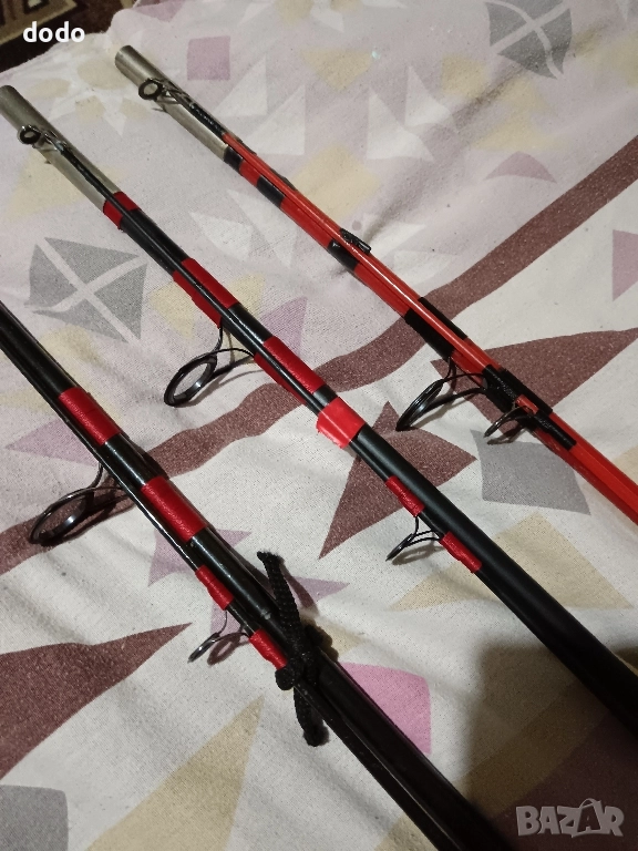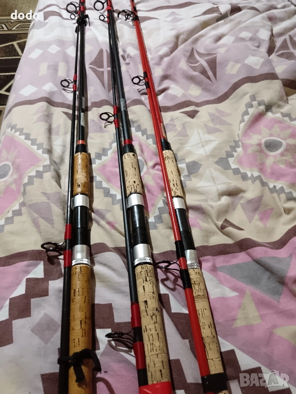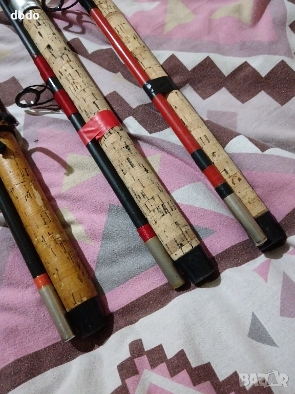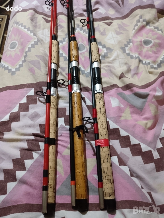 три броя немски въдица germina standart 2.70m с коркови дръшки с сменени сикови водачи готови за риболов цена за брои твърда цена