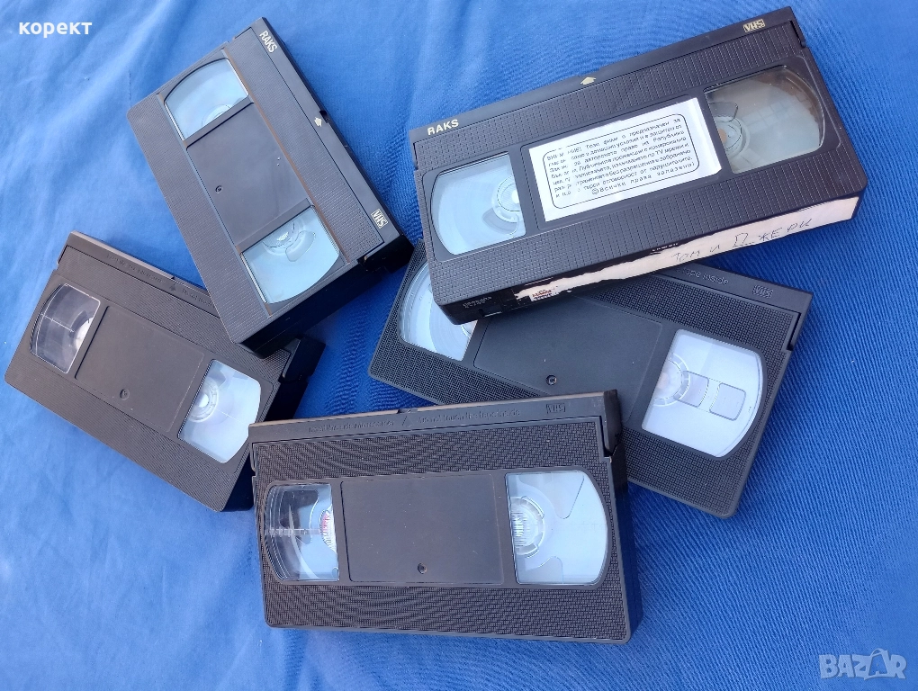 5. Видеокасети, Цар лъв, приказка за джунглата, Том и Джери, зайчето Бъни и бегача и др. Кадетите са оригинални, но без кутии. цената е за всички бройки от снимките. Попълвам 10 % намаление на транспорта