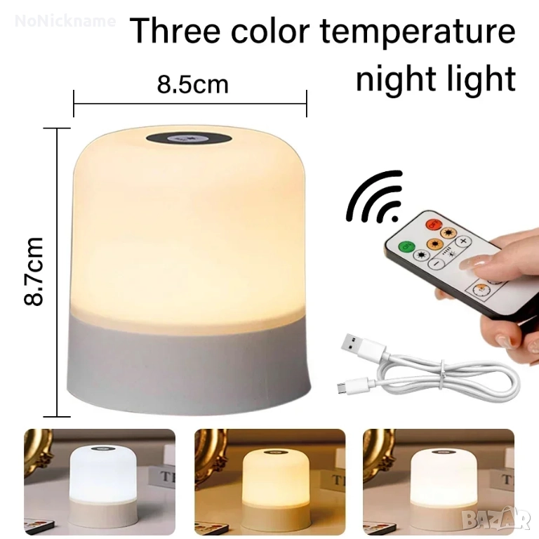 Акумулаторна преносима LED нощна лампа с дистанционно управление, настолна лампа → Обява 52446818