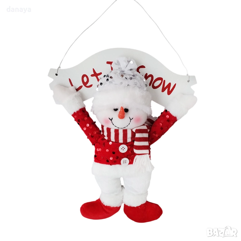 6220 Висяща коледна украса Дядо Коледа Снежен човек Let It Snow, 34 см