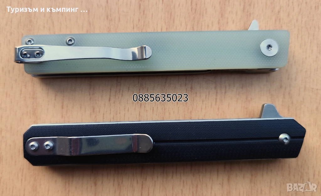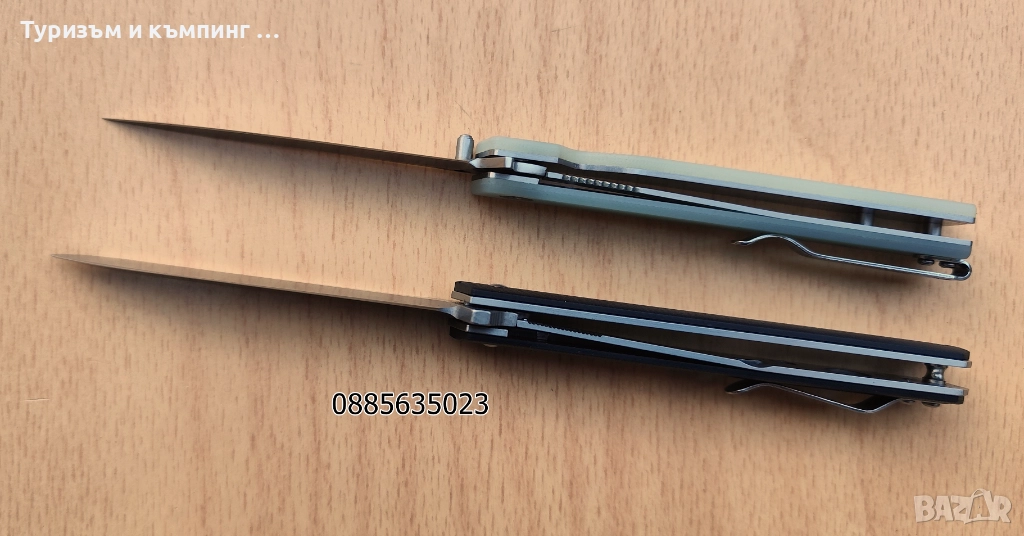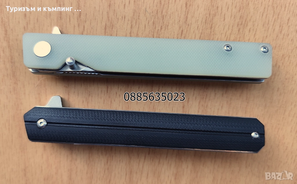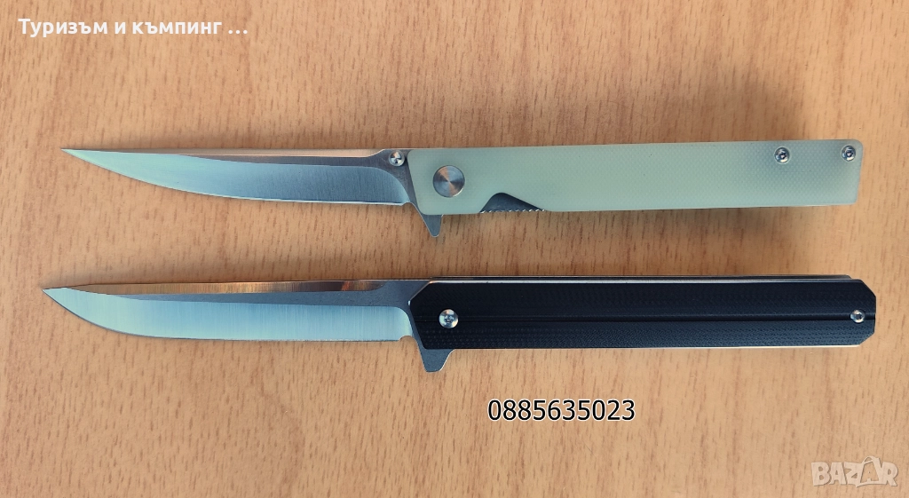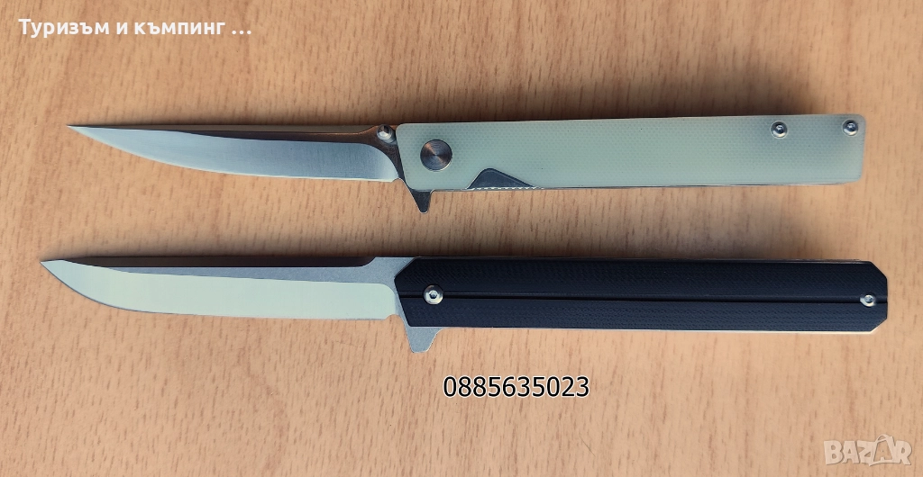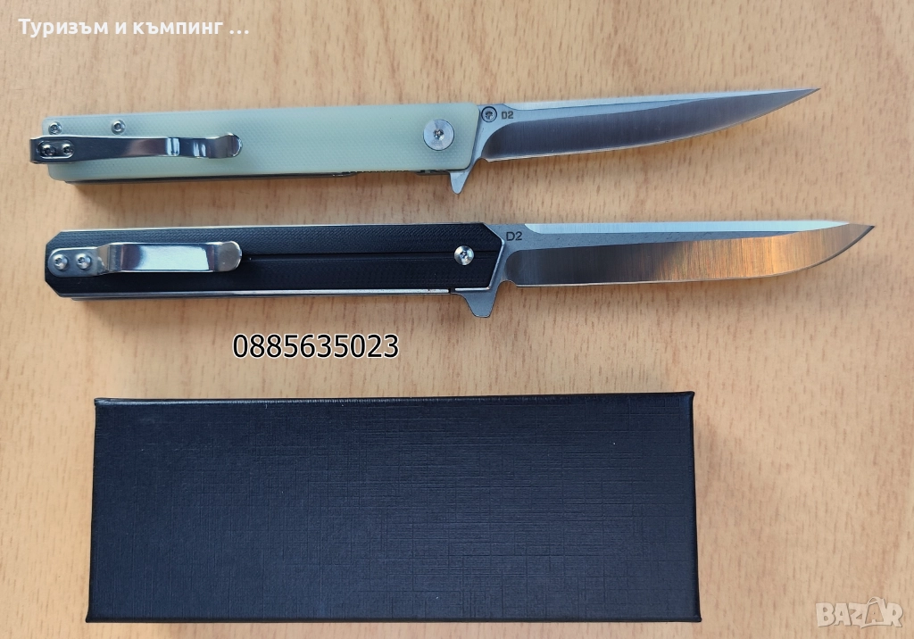 ножчета с много добро качество и изработка и материал на острието D2, всеки с цена 40 лв.
