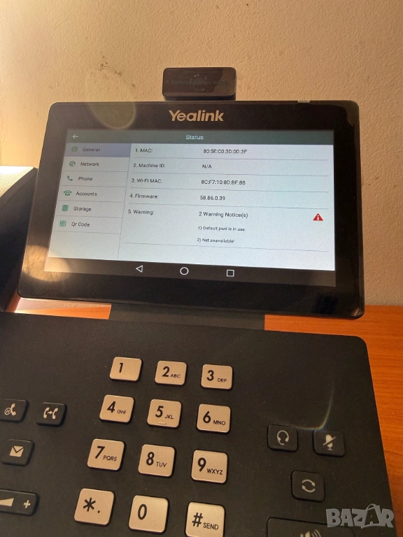 VoIP телефон YEALINK SIP-T58A IP PHONE (с USB кабел за захранване, но работи с PoE или външно захранване), както и с HD камера CAM50, което го прави автоматично SIP-T58V. Телефона е като нов, ползван няколко месеца като тестов, докато камерата е нова. Работи с всякакви SIP IP PBX (3CX, Yeastar, Elastix, FreePBX и други), както и като самостоятелен SIP IP Client към облачен доставчик. Може да се флашне и с Teams Firmware и да работи с Teams (какъвто му е оригиналния фърмуеър). Идва с USB захранващ кабел към компелкта и оригианлните аксесоари и кутия!