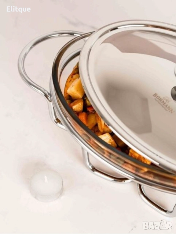 Съд за затопляне Bohmann, 1.6 л., Стоманен капак, Стъкло, Инокс