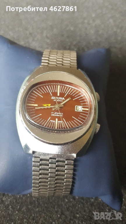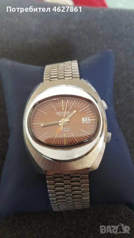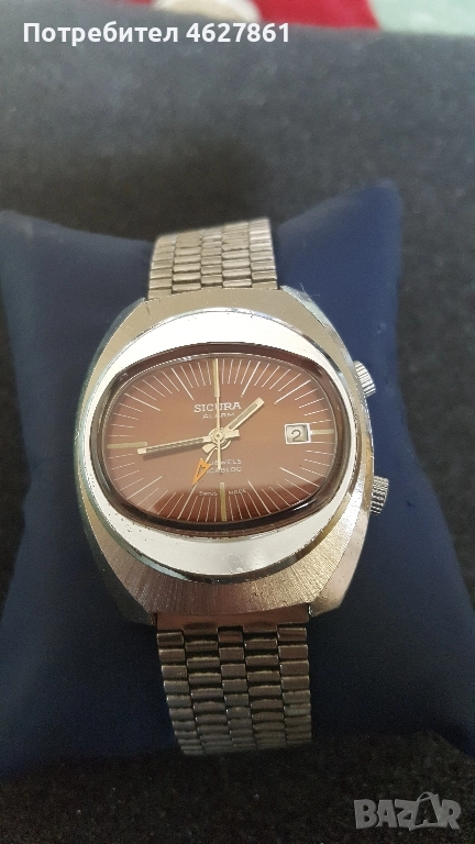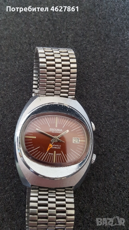 Рядък модел швейцарски часовник Sicura alarm много запазен работи перфектно Звъни на точно определения час точен до секунди.Профилактиран.