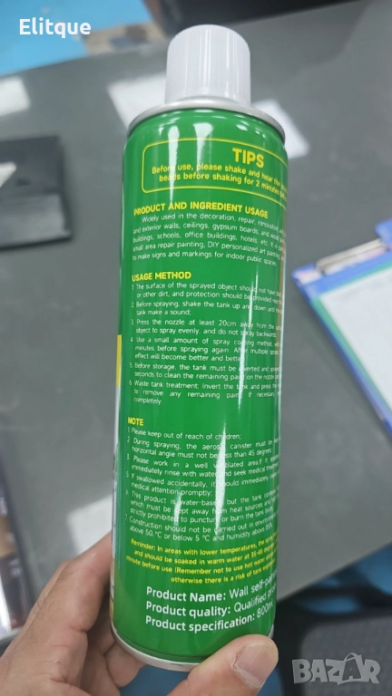Ако стените ти са надраскани, замърсени или изгубили свежест, този спрей решава проблема за минути. Скрива петна и дефекти още при първото нанасяне, без нужда от ремонт или инструменти. Формулата е на водна основа и без мирис, което позволява безопасна употреба в затворени помещения.