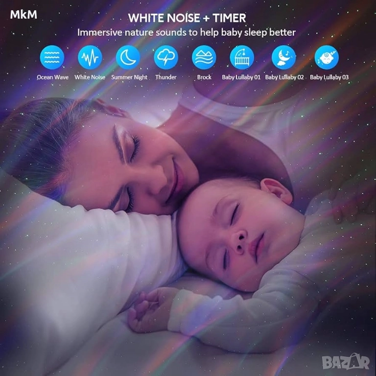 —Вградени 8 звука с бял шум: Нощният проектор Aurora включва 8 популярни и успокояващи звука: бял шум, вентилатор, буря, крикет, течаща вода, океански вълни и 3 мелодии за бебета и малки деца. Изберете любимия си и оставете спиращите дъха звезди и плаващите мъглявини да успокоят ума ви. Както децата, така и възрастните могат да се насладят на цяла нощ, изпълнена със сладки сънища.