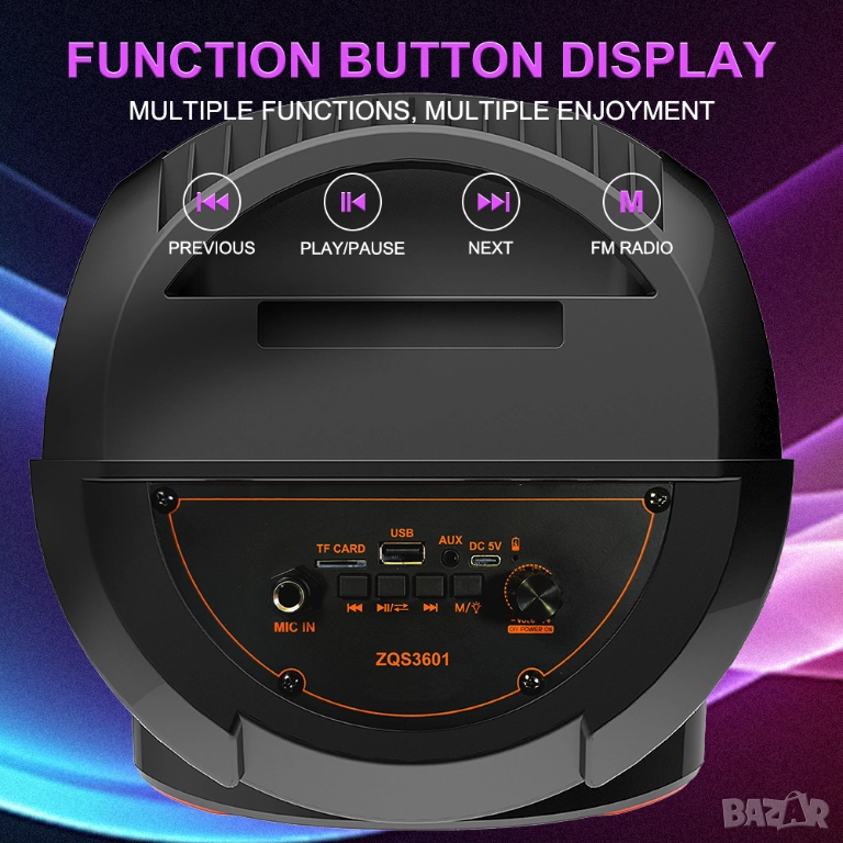 Оборудван с мощни високоговорители, този високоговорител осигурява ясен и мощен звук с дълбок бас, способен да запълни всяко пространство с любимата ви музика, осигурявайки висококачествено слушателско изживяване.