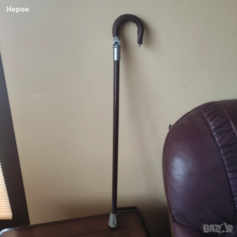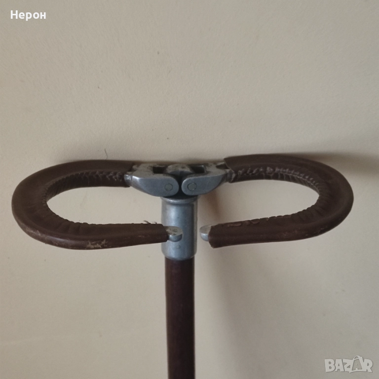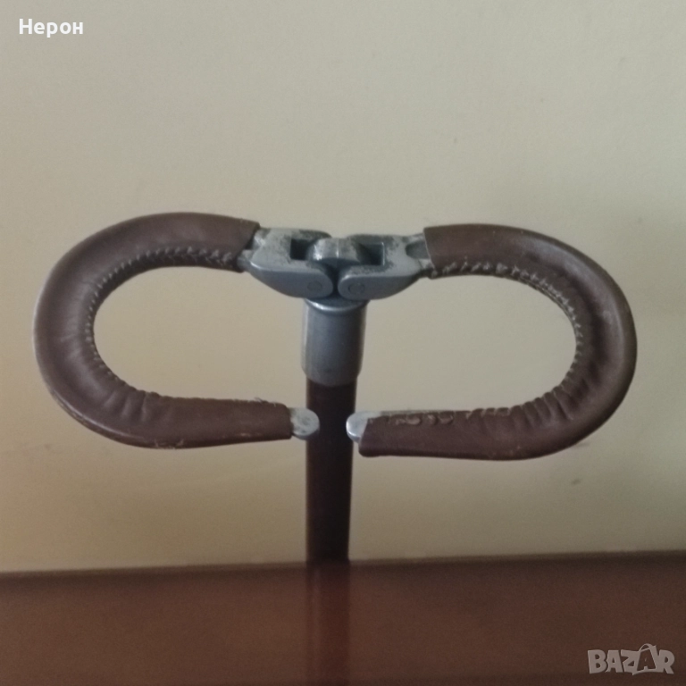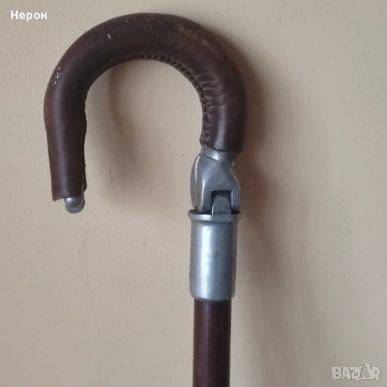 Бастун в идеално винтидж състояние с кожени дръжки, рядък, колекционерски, згъваем, става за почивка, като столче, височина-81 см.