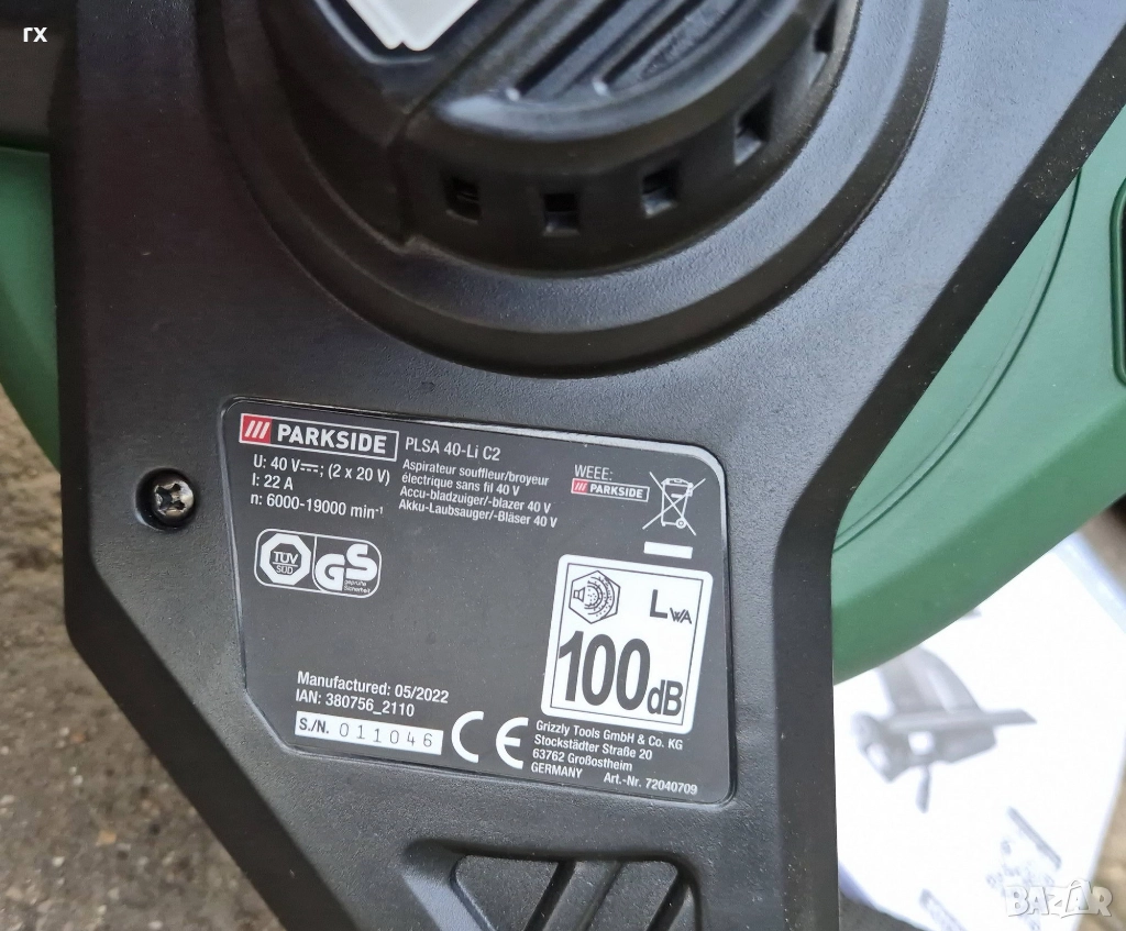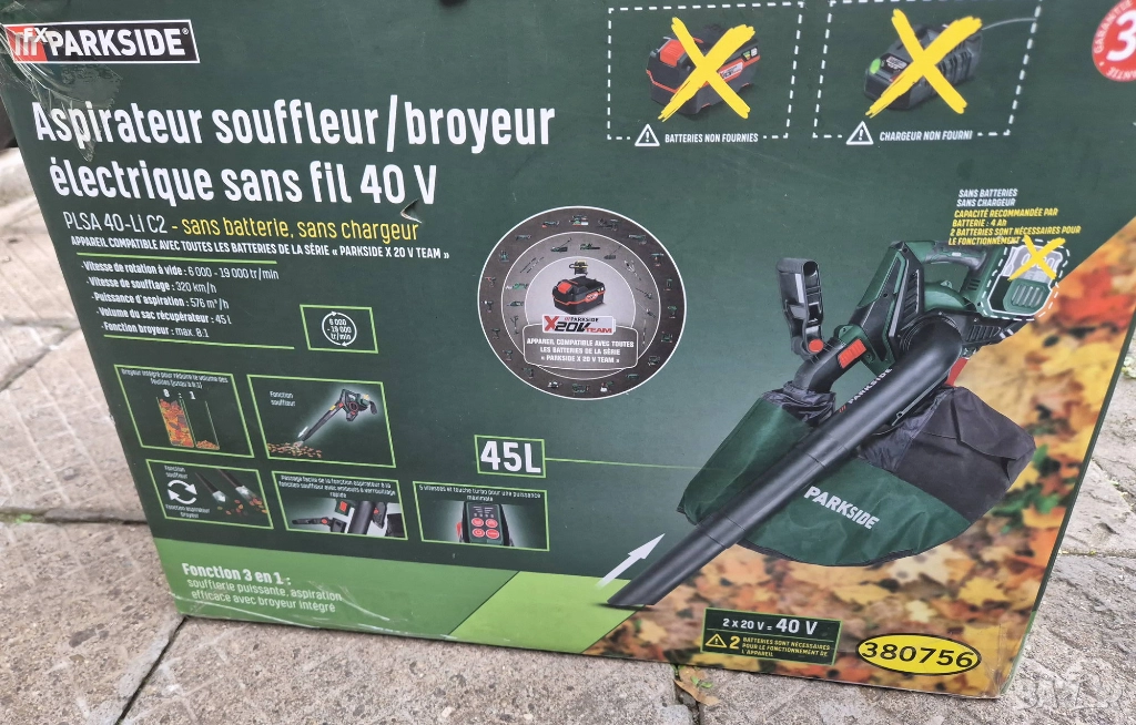 Листосъбирач / духалка на батерии Parkside PLSA 40-Li C2, без батерии и зарядно