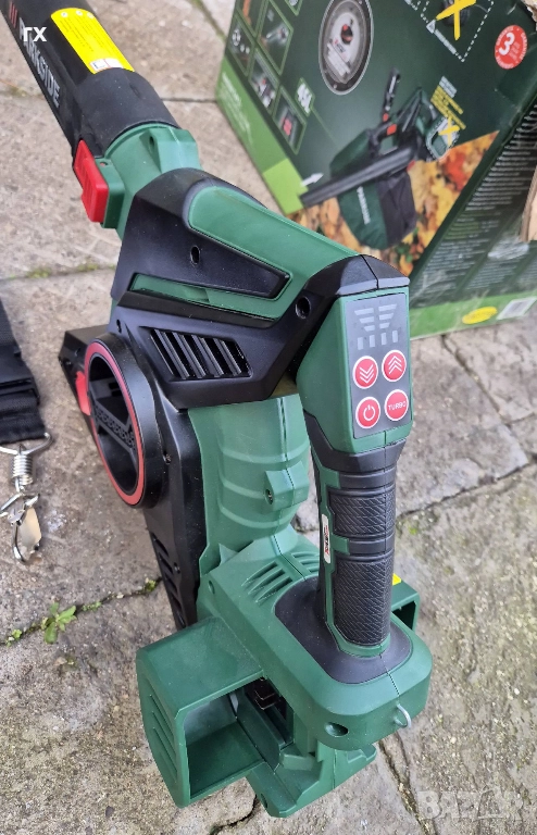 като духалка за листаИндикатор за капацитета на двете батерии на устройствотоПрепоръчителен капацитет на всяка батерия: 4 AhЗа работа са необходими 2 батерииНе е подходящ за прахосмукачка на мокри листа, пръст, пясък,