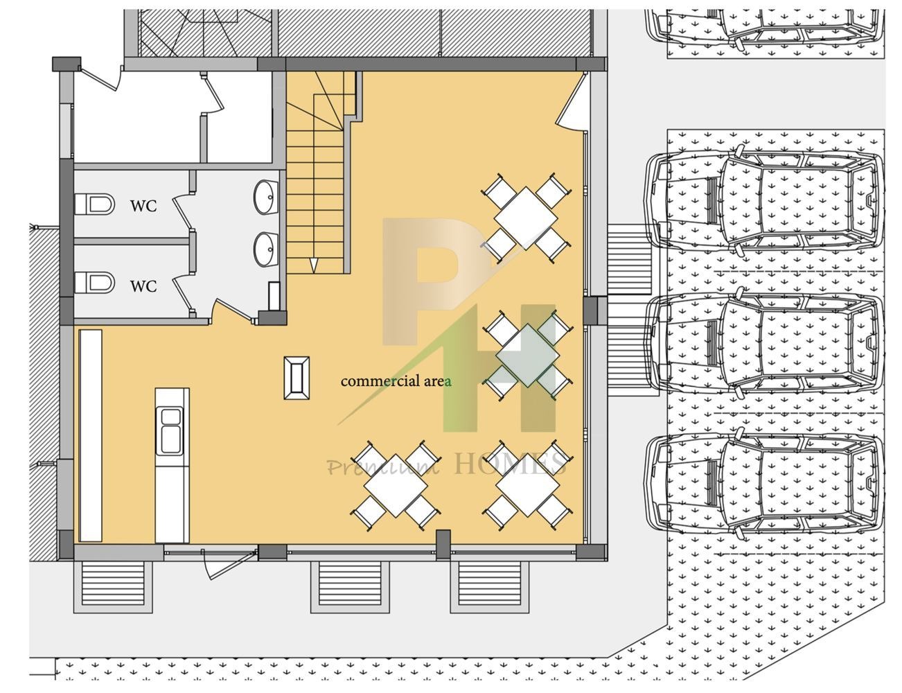 Всеки обект е с правилна форма, оптимална светла височина и широки витрини към улицата, което позволява гъвкаво вътрешно разпределение и атрактивно представяне на дейността.