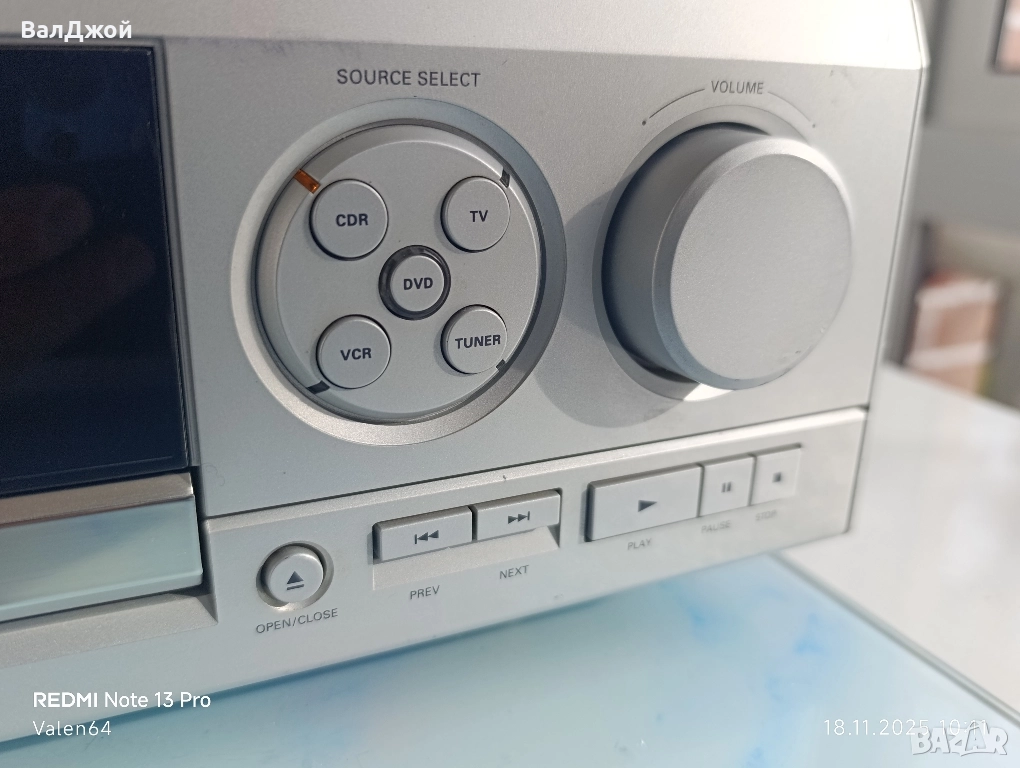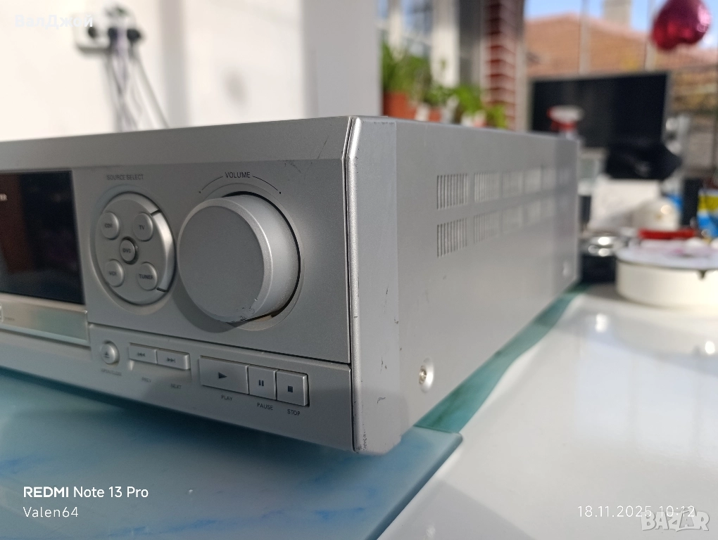 много добро състояние.. леки забележки по капака. мощен тороидален траф. ярък дисплей.. Тежи около 12 кг.Дивидито работи и чете DVD и cd дискове. всички входове и изходи работят. забележка.. радиото работи но от време на време прекъсва.. цената е съобразена с това и не се коментира. изпращам с преглед и тест по Спиди или Еконт.