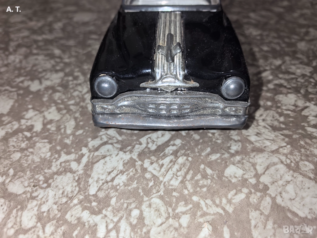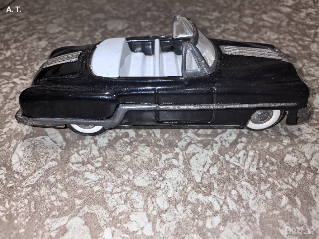 Стара механична, ламаринена количка от 50-те години на миналия век, доста запазена за годините си! На размери е голяма 1/18 или може и малко по голяма.