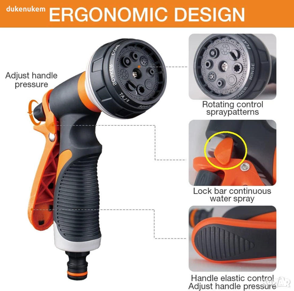 Градински пистолет, 8 режима, висок натиск, ергономичен дизайн