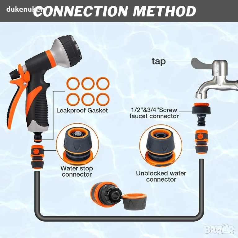 Подходящо за: Градински маркучи, стандартни бързи връзки