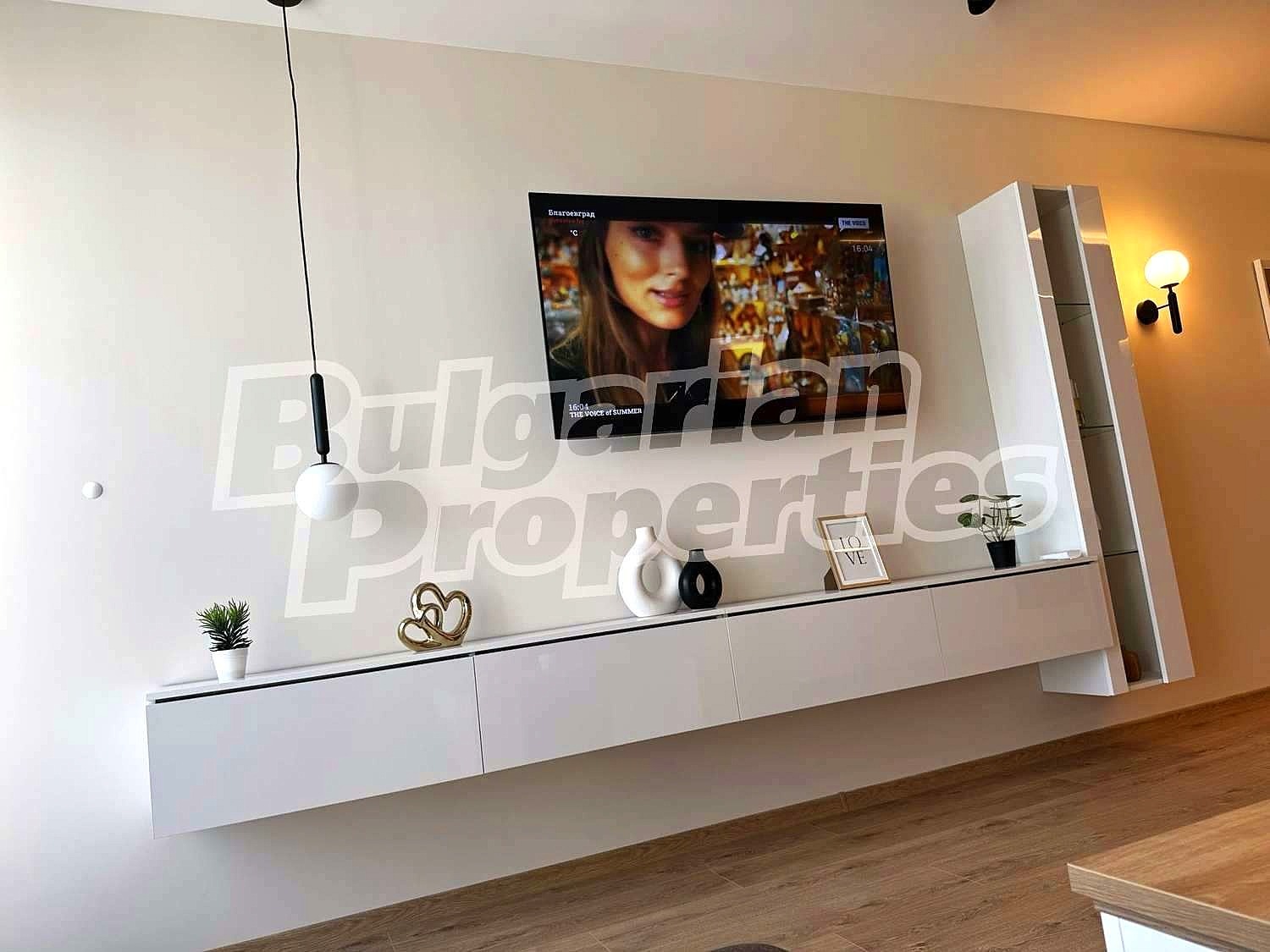 Апартаментът впечатлява с изцяло южно изложение, което осигурява светлина през целия ден, както и приятна гледка към морето. Пространството е функционално организирано уютна зона за сън с голямо легло, комфортен разтегателен диван за почивка, напълно оборудвана кухня и стилен кът за хранене. Интериорът е модерен, добре подбран и готов за непосредствено нанасяне. Осигурен е и високоскоростен интернет, което прави имота подходящ и за работа от дома.