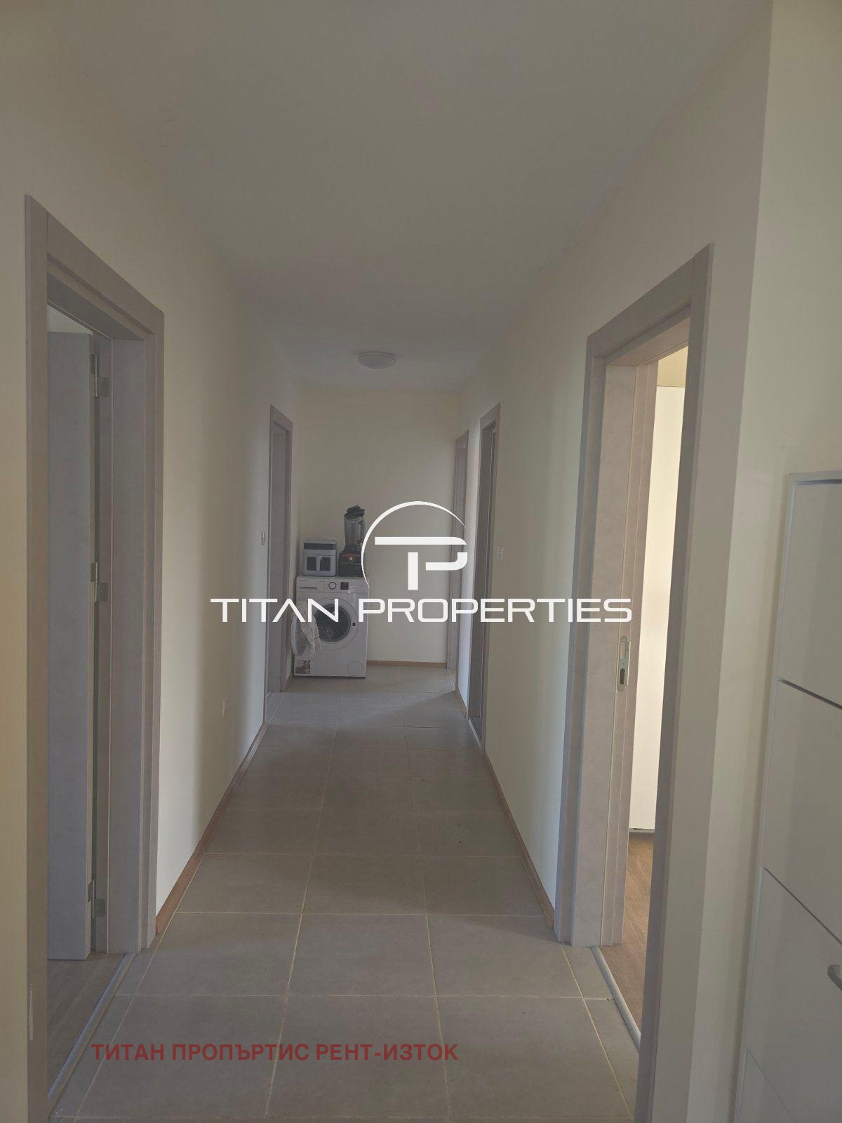 Разпределение: входно антре ,всекидневна с кухненски бокс, основна спалня с баня и тоалетна, втора спалня, стая за гости, втора баня с тоалетна