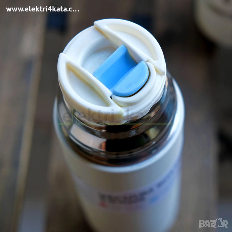 Термосът е изработен от безвредна пластмаса и неръждаема стомана, които гарантират безопасност и дълготрайност.