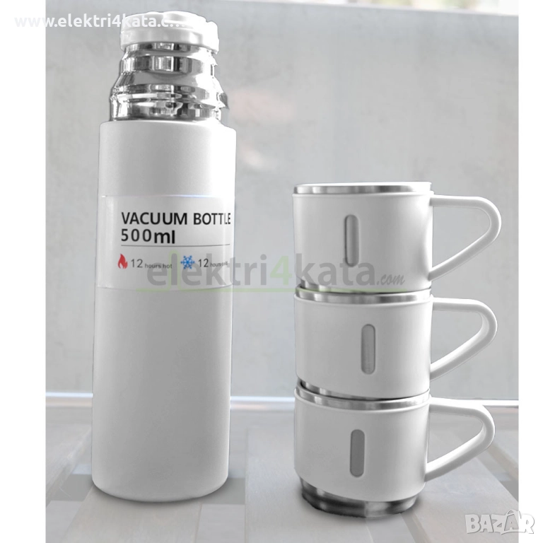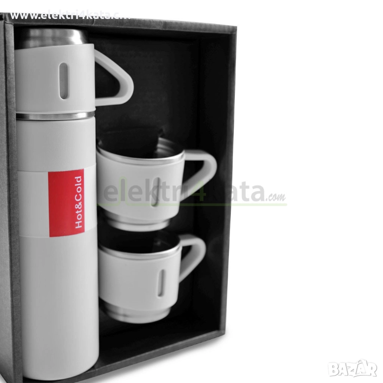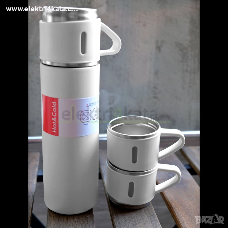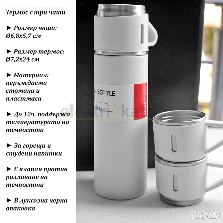 🔹 Ключови предимства: термос за кафе, термос за път, устойчив на течове, с три чаши.
