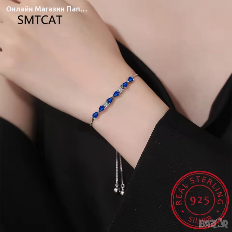 Представяме ви SMTCAT 925 стерлингово сребро гривна, създадена да впечатлява с елегантни сини циркони във форма на водна капка. Всеки камък е акцентиран със сияйни странични кристали, които придават допълнителен блясък и лукс.