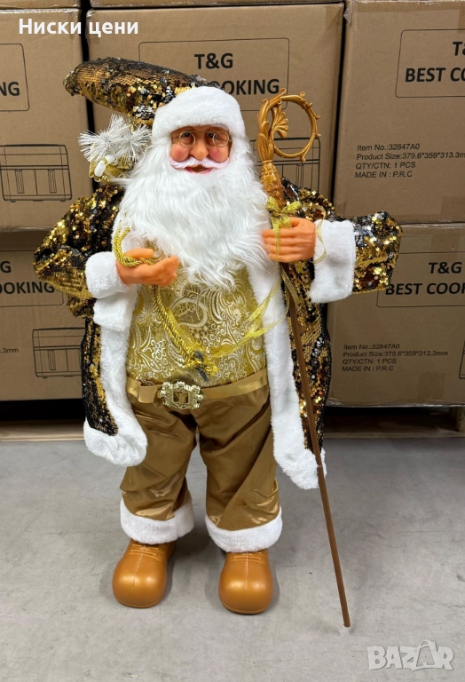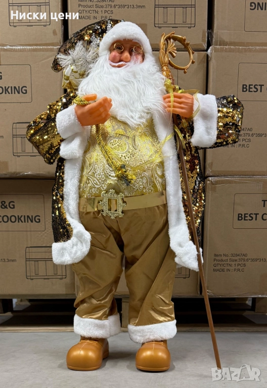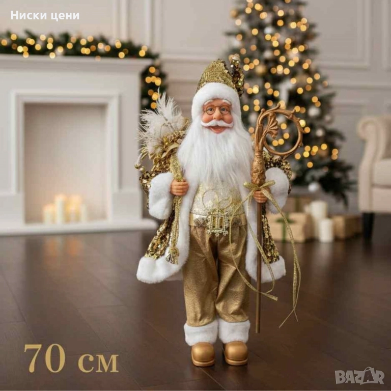 Луксозна коледна фигура Дядо Коледа в златно (50 / 70 / 90 см) → Обява 52453956