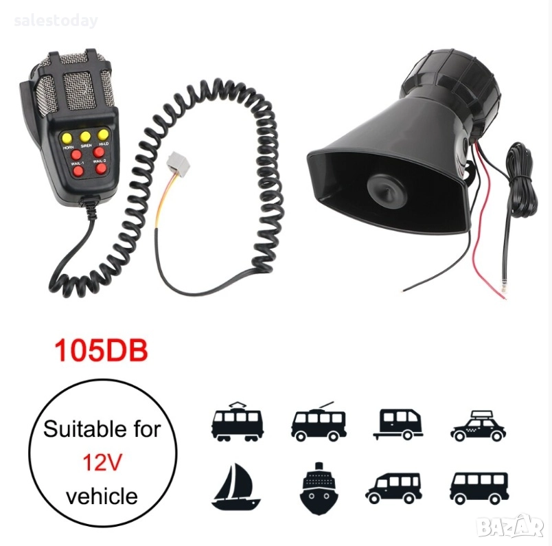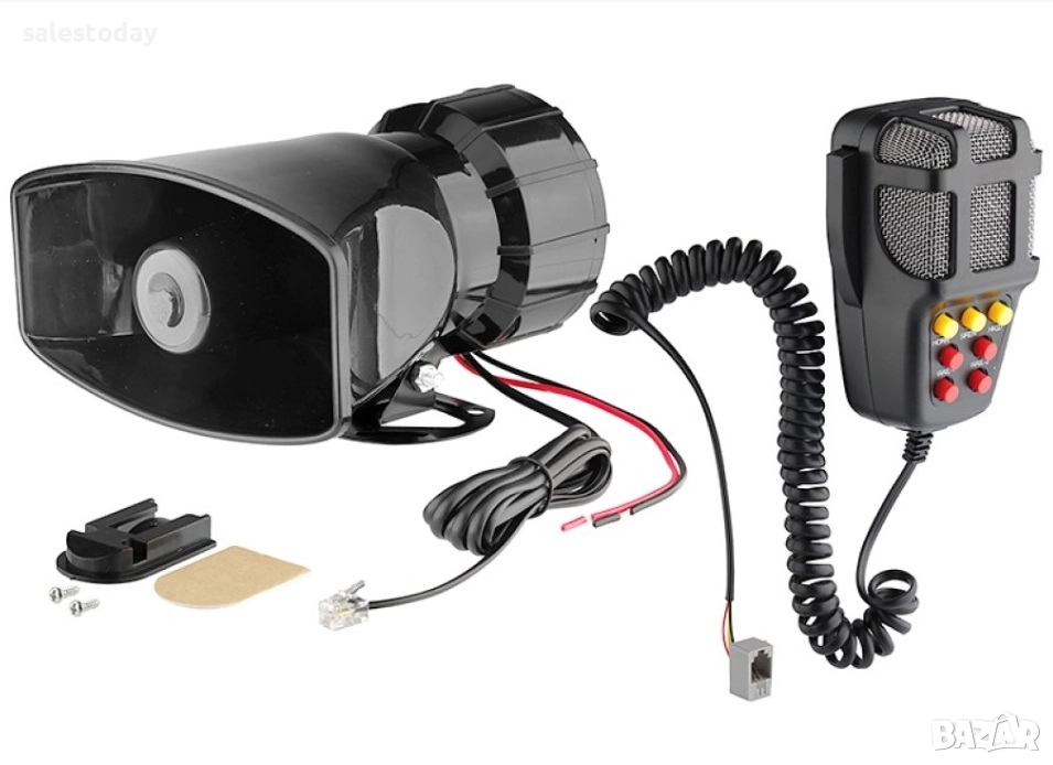 Сигналът се управлява от бутони на мегафона. Звукът е ясен и силен.