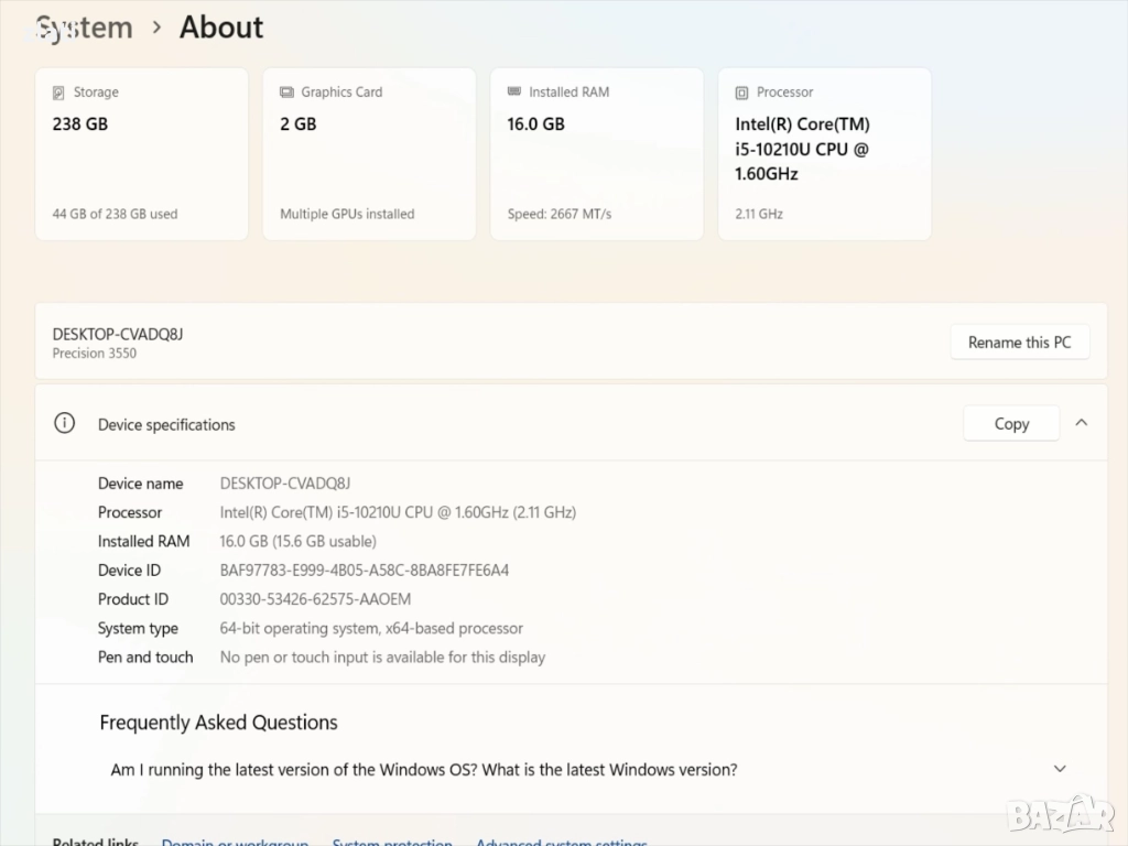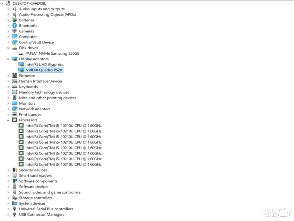 laptop Dell Precision 3550 i5-10210U 1.60GHz/RAM 16GB/SSD 512GB/HDMI/Web-Камера / NVIDIA Quadro P520 2GB DDR5 (Подобна на NVIDIA GTX 750 TI 2GB DDR5)
