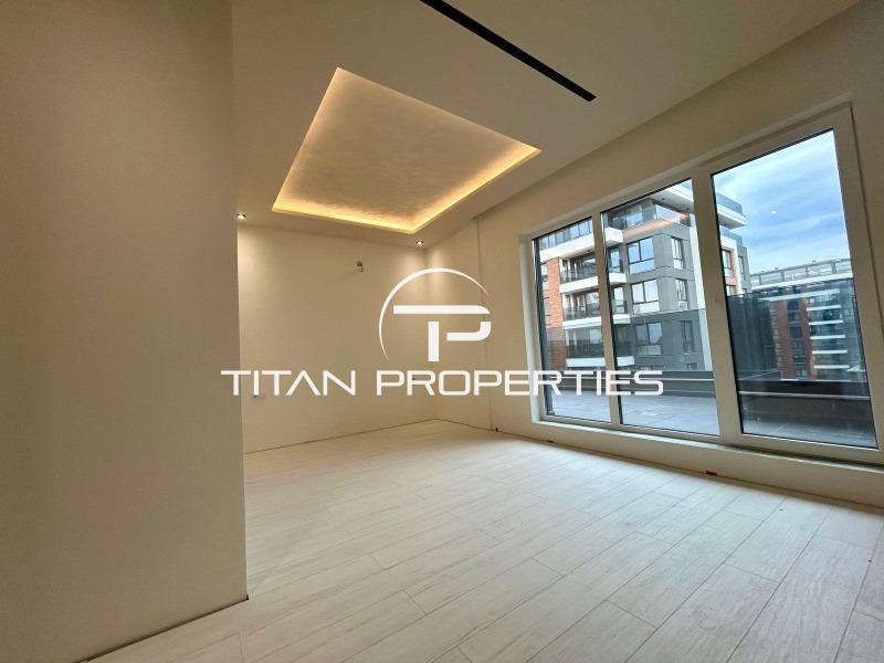 Имотът е разположен в чисто нов комплекс от затворен тип с контролиран достъп и доказан строител. Ситуиран на 6-ти жилищен етаж (последен), имотът разполага със застроена площ от 87кв.м., разгърната в следното разпределение: входно антре, светъл и просторен хол с кухненски бокс, голяма мастър спалня, втора просторна стая и обширен санитарен възел с мокро помещение/килер и 100кв.м. панорамна тераса