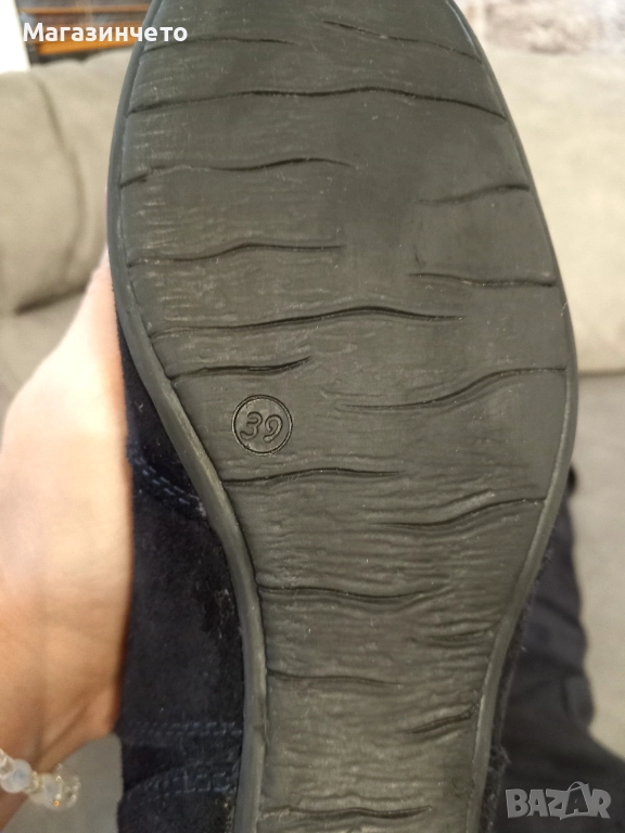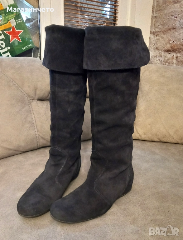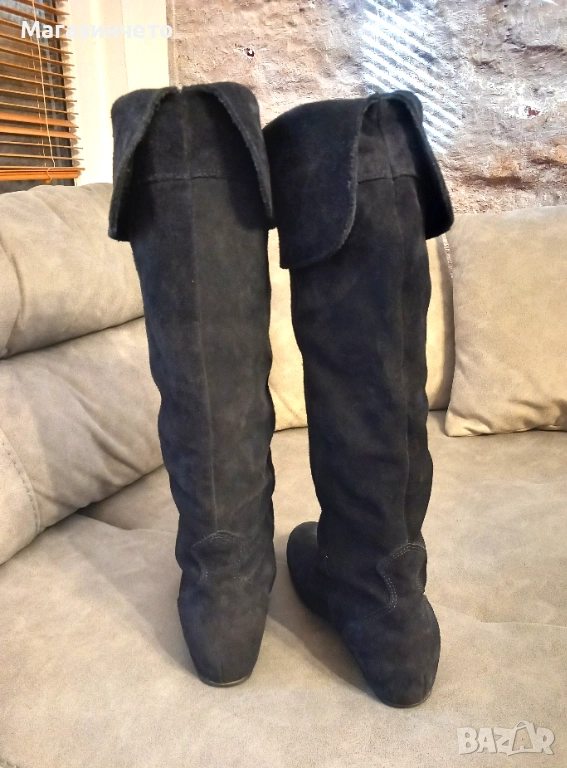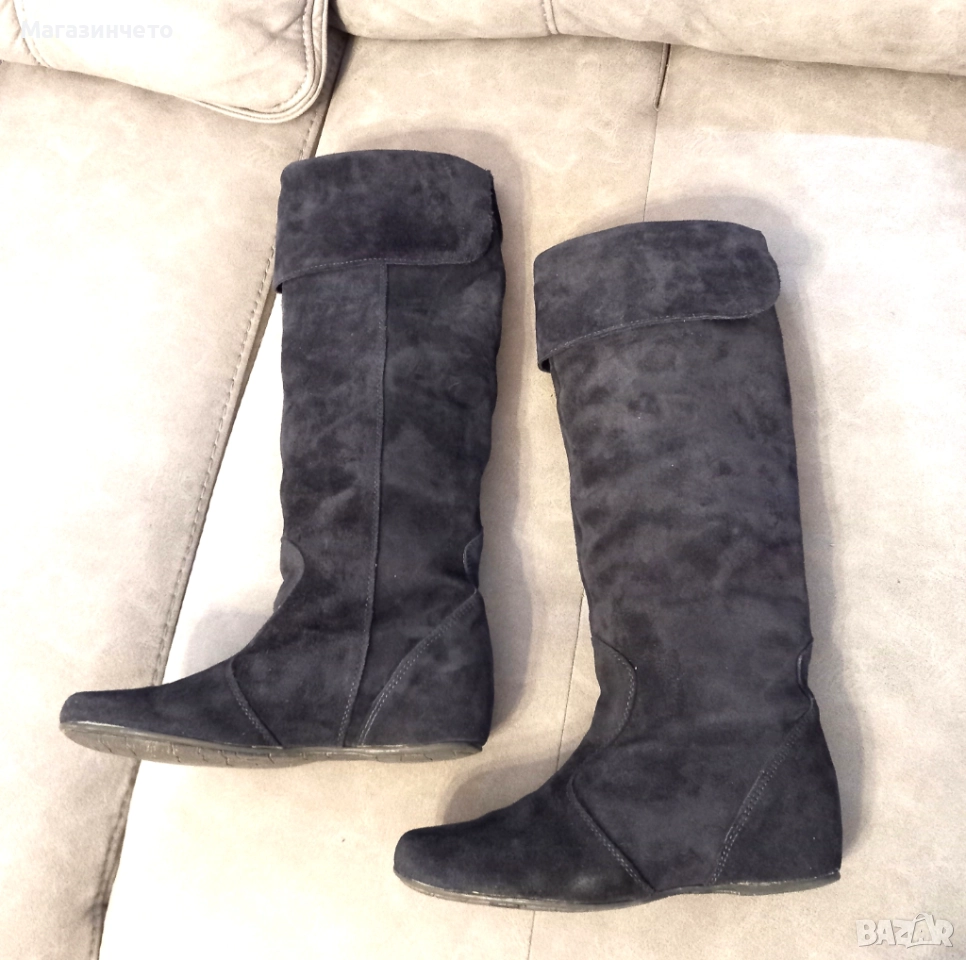 Тъмносини дамски ботуши от естествен велур, номер 39 → Обява 52455217
