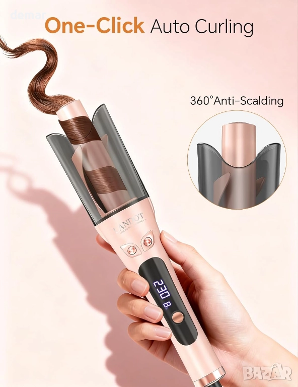 Автоматична маша за коса LANDOT, въртяща се - розово злато