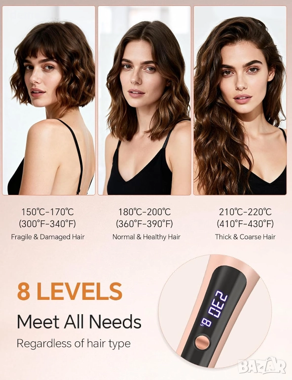 Тази маша за къдрици осигурява лесни къдрици, стилни като от салон, само с един бутон, използвайки автоматична система, която навива и засича всяка къдрица за безпроблемни резултати. Удълженият ѝ цилиндър работи плавно с дълга или гъста коса, без трудно разделяне на секции, а бързото нагряване осигурява бързо оформяне в натоварени дни. Дизайнът помага за създаването на дълготрайни, гладки къдрици, които остават дефинирани през целия ден, подкрепени от плаваща плоча за равномерно оформяне. Функциите за безопасност включват откриване на заплитане, автоматично обръщане и 360° защита против изгаряне, с йонна технология, добавяща блясък. С розово злато, тя е и чудесен подарък за жени и тийнейджъри.