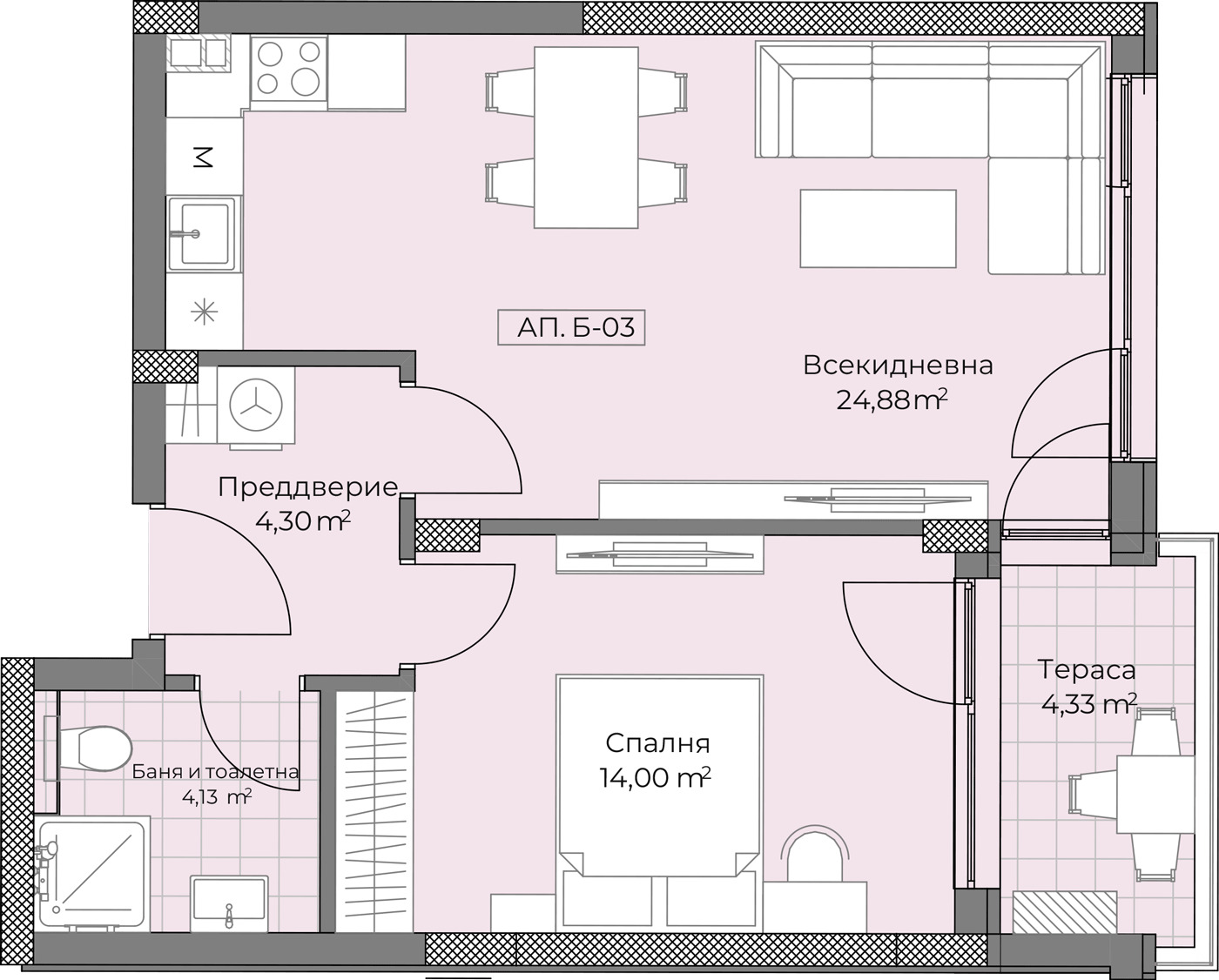 * хол с кухненски бокс,