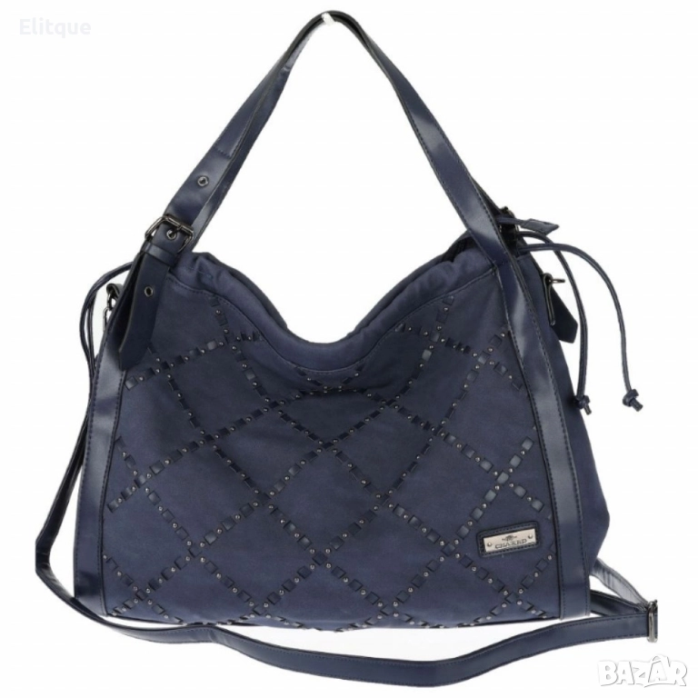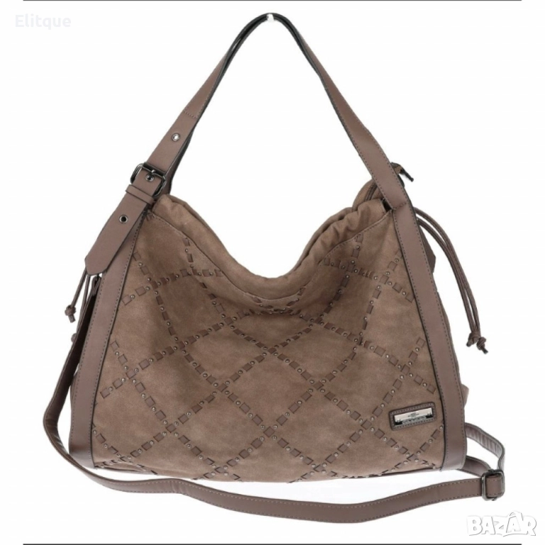 Велурена дамска чанта с декоративни ленти и метални капси – елегантен бохо дизайн