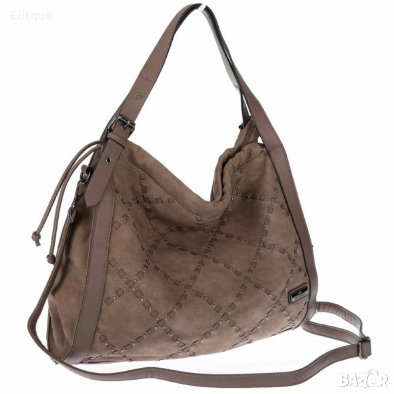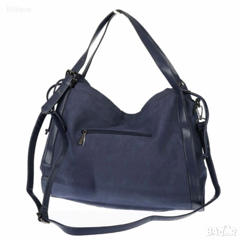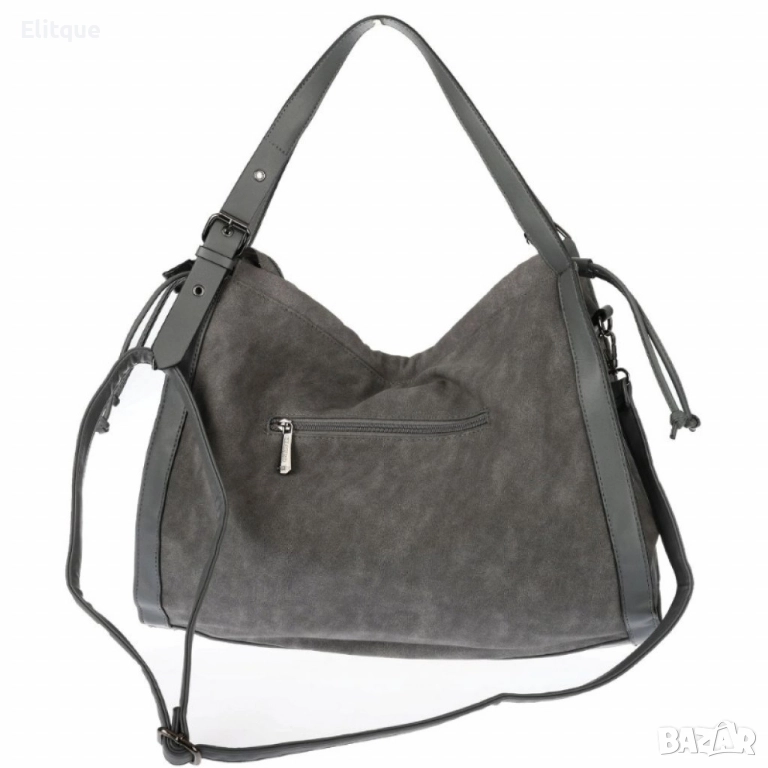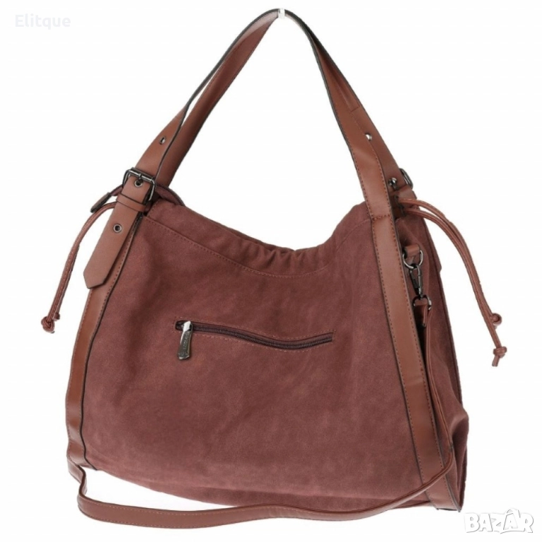 Материал: велур + еко к; Подплата: текстил; Основно отделение: 1, разделено на две части; Вътрешни джобове: 1 х джоб с цип, 2 х отворени джоба; Външен джоб: 1 заден с цип; Дръжки: 2 х средно дълги дръжки за носене на рамо, 1 х дълга регулираща се, подвижна дръжка; Закопчаване: цип; Размери: Височина: 34 см/Дъно – дължина: 42 см/Дъно – ширина: 4 см; Цветове в наличност: Бордо, Бежов, Тъмносин, Сив, Кафяв, Черен;