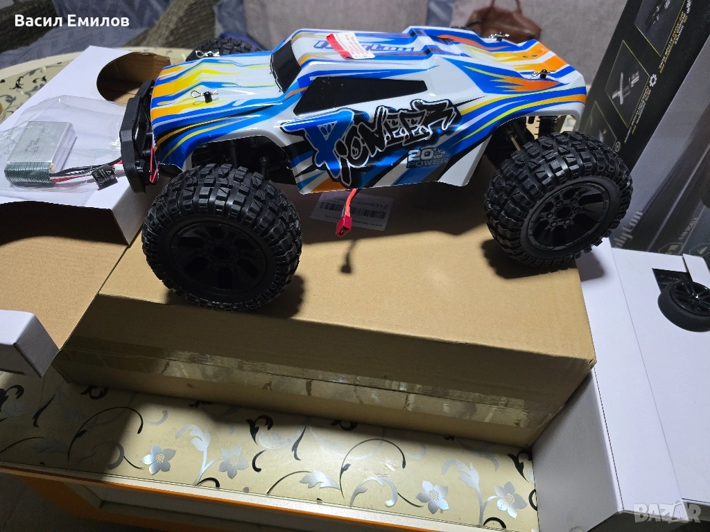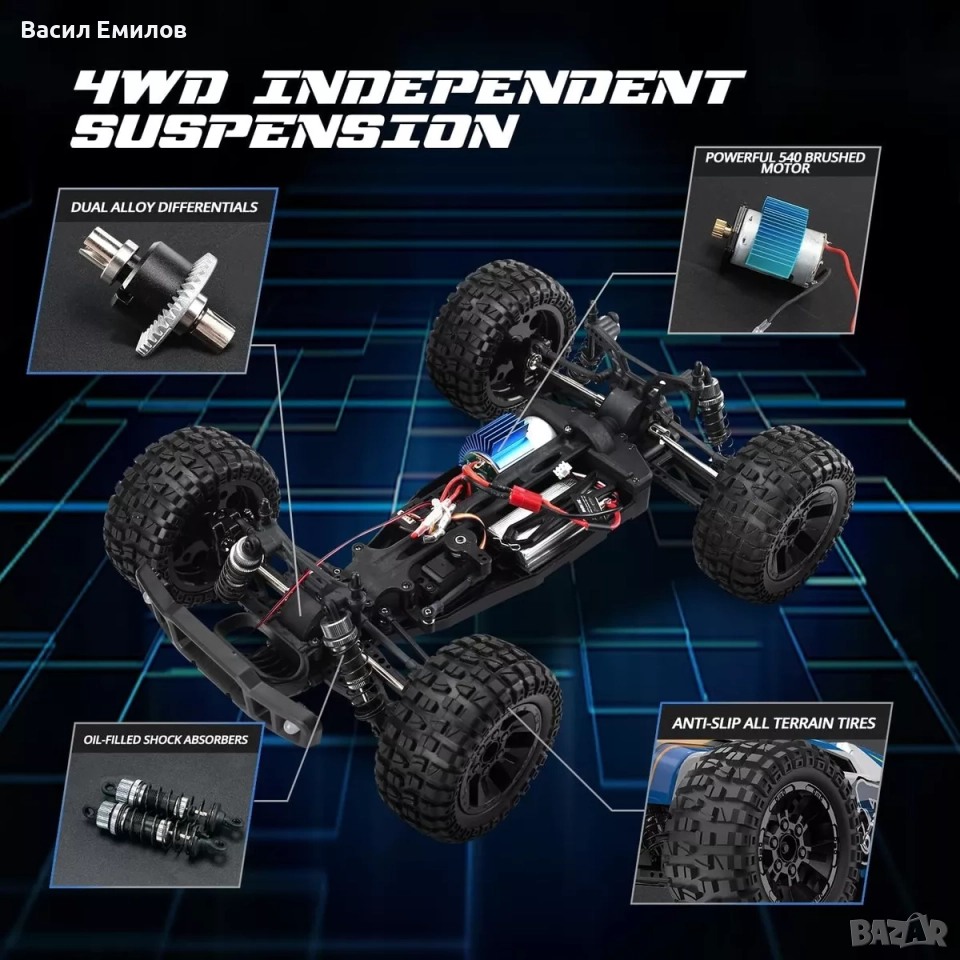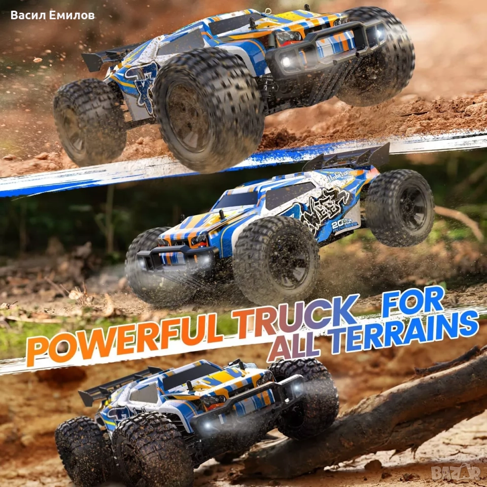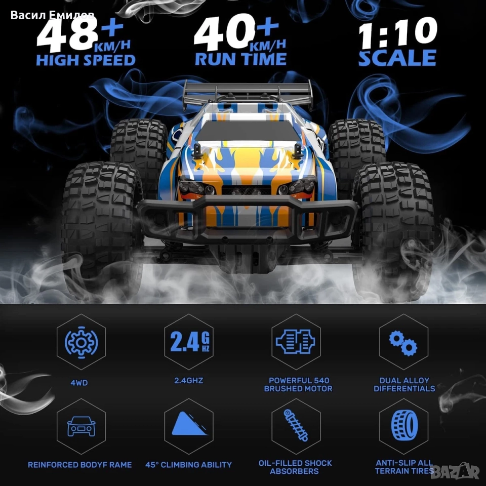Реалистичен високоскоростен RC автомобил в мащаб 1:10: Този RC автомобил е оборудван с офроуд гуми и мощно подобрен двигател, той достига висока скорост до 48 km/h и ви предлага по-голяма конкурентоспособност в драг състезания. Пълният контрол на скоростта предлага плавни колебания на скоростта и високочестотно ускорение и гарантира реалистично изживяване при шофиране за максимално забавление и тръпка при висока скорост.