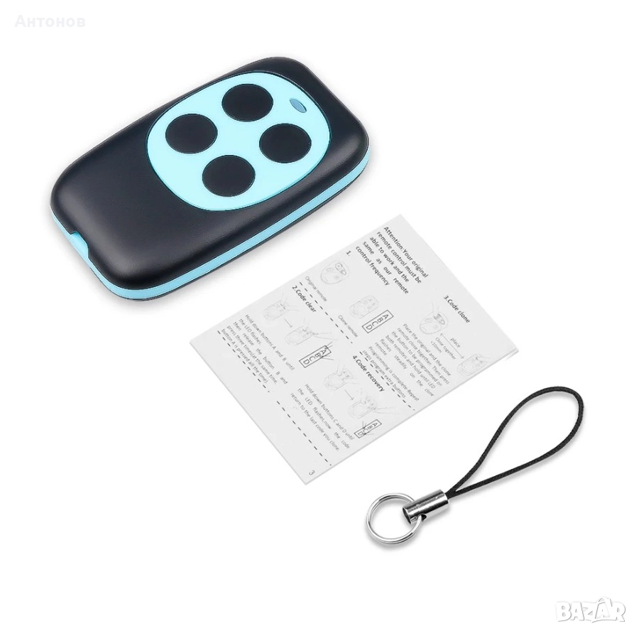 – Безжично дистанционно за копиране и клониране на гаражни врати с RF предавател 433MHz и 4 бутона. – Съвместимо с множество чипове, подходящо за електрически и гаражни врати, бариери и алармени системи.