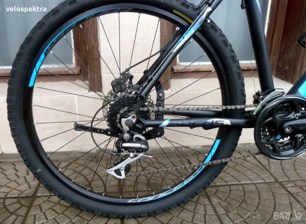 24 скорости Шимано Асера , палцови команди 3х8 Шимано с дисплей. Две дискови механични спирачки Шимано . Диск 180/160