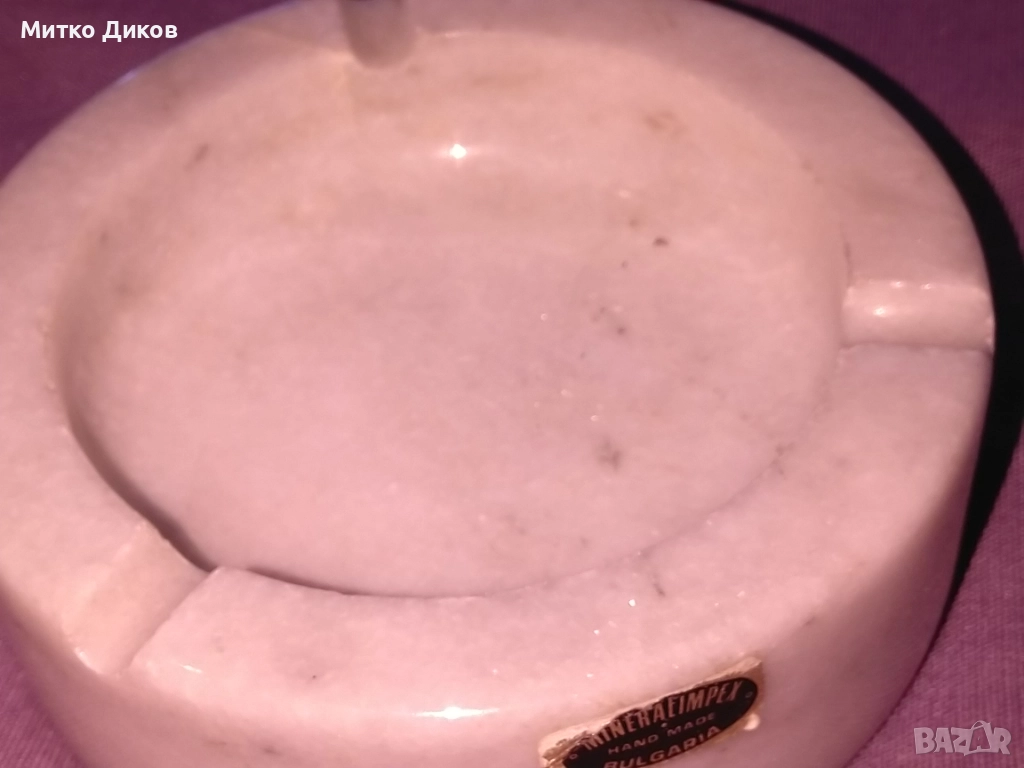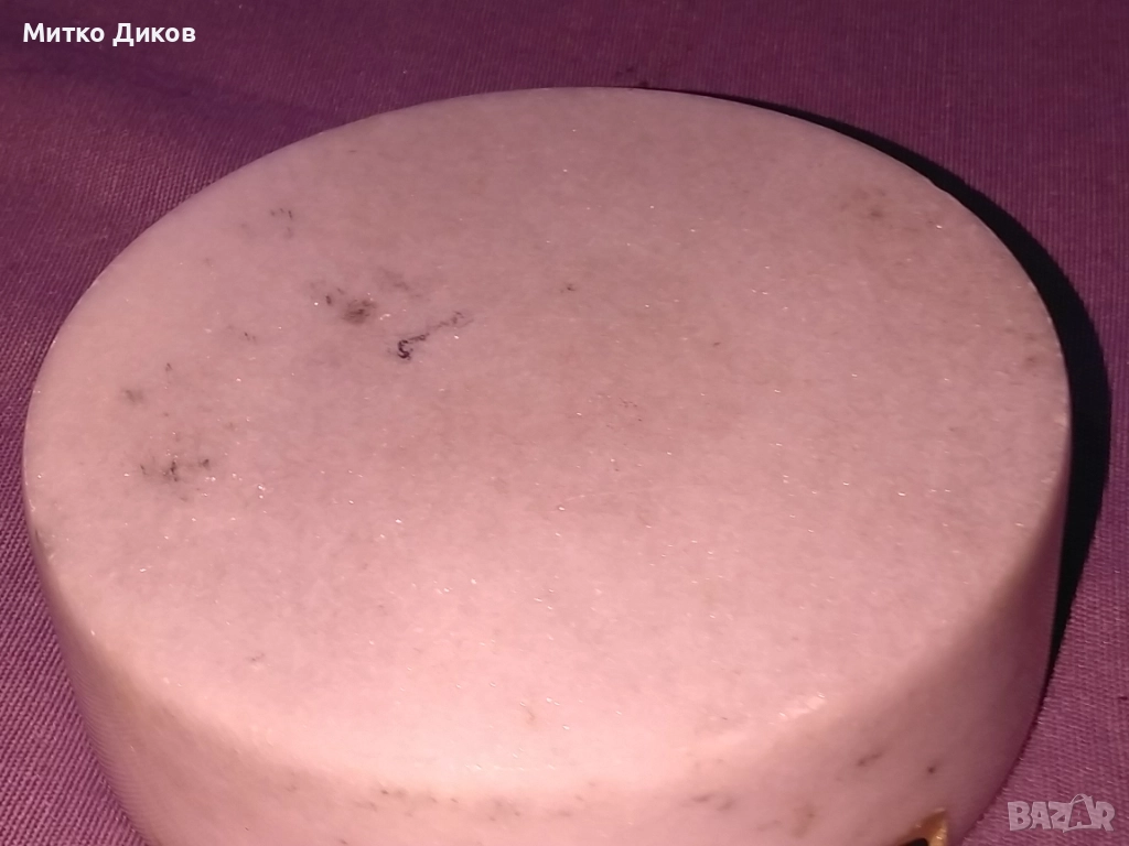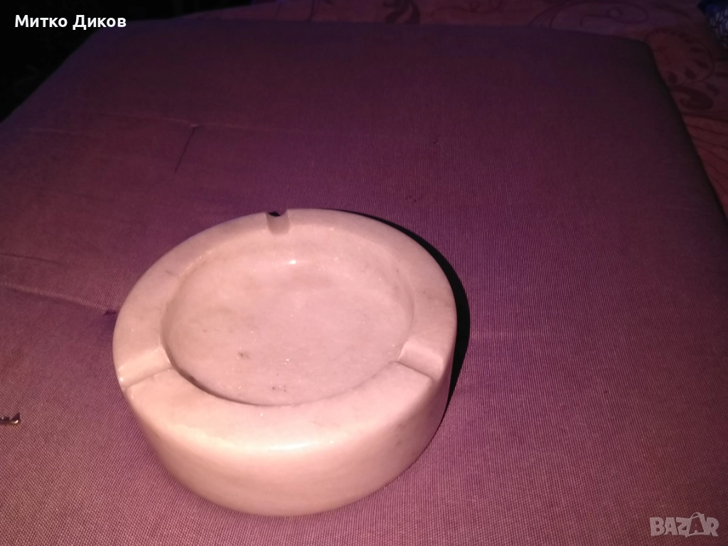 Мраморен пепелник от соца фи 120 мм и Н-39мм -900гр. и свещник- фи 60мм Н-45мм-400гр Минералимпекс