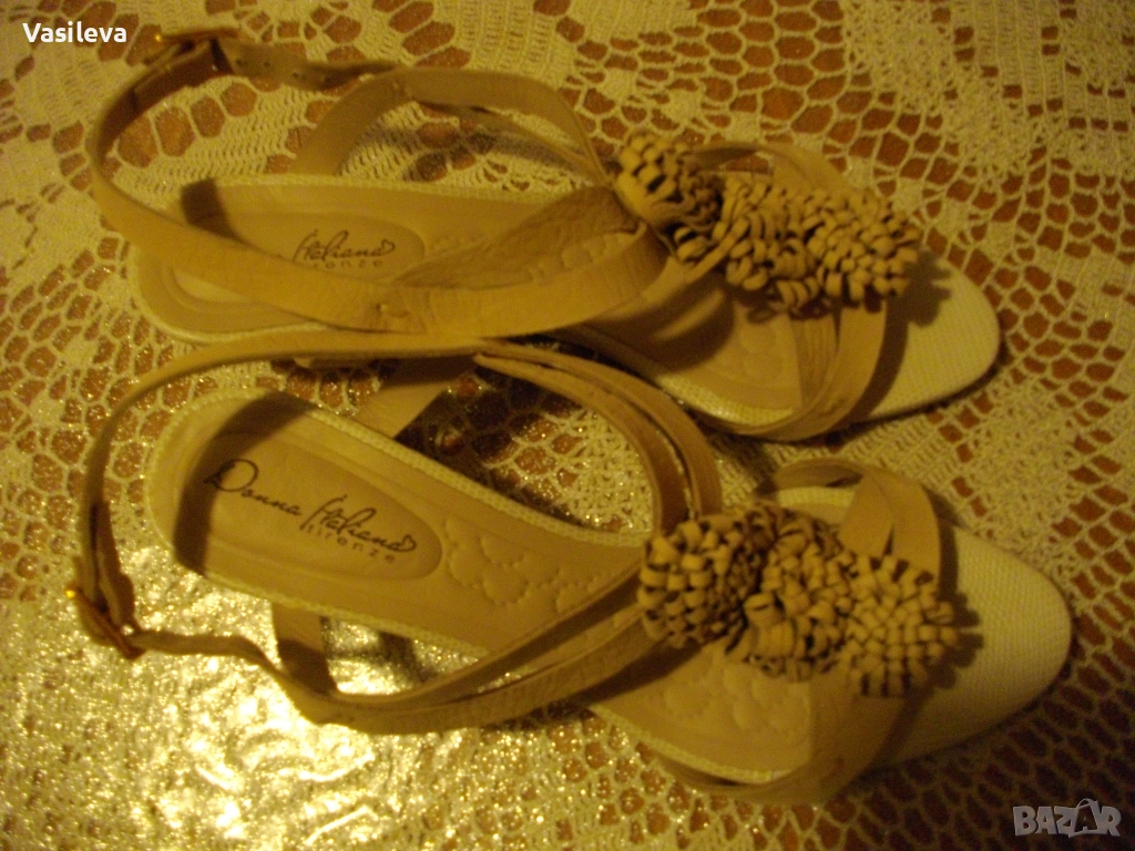 Елегантни бежеви сандали от естествена кожа → Обява 52456699