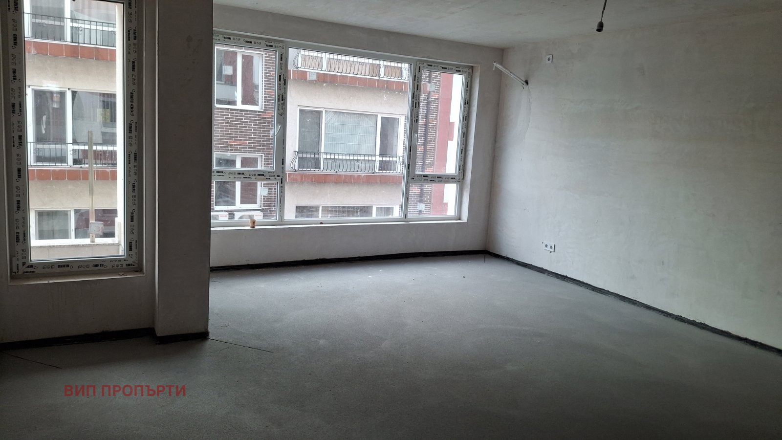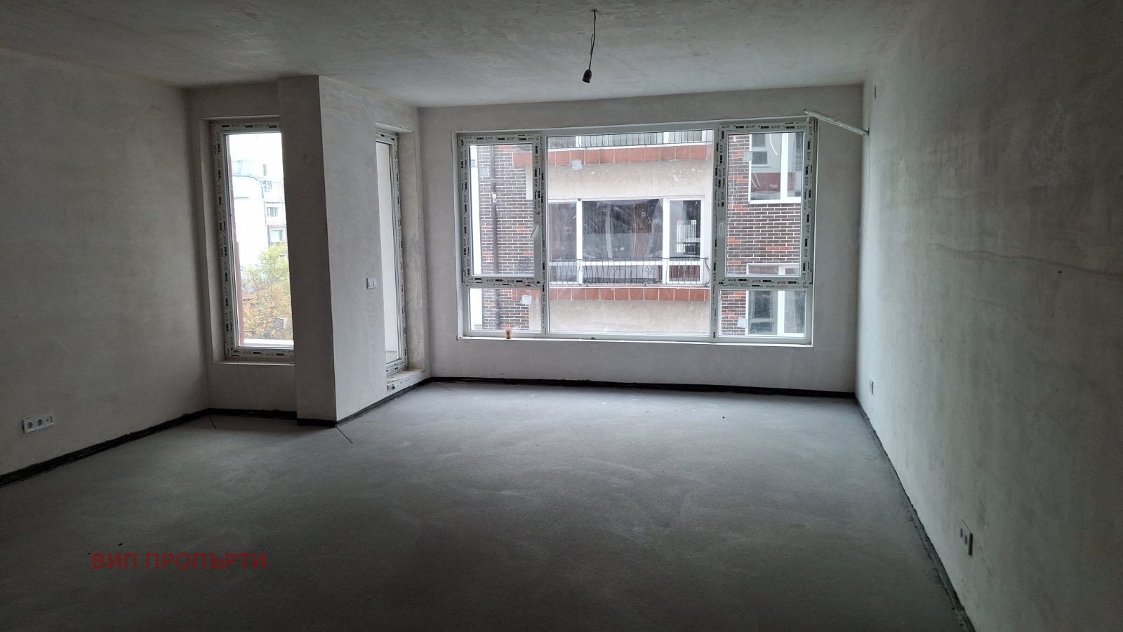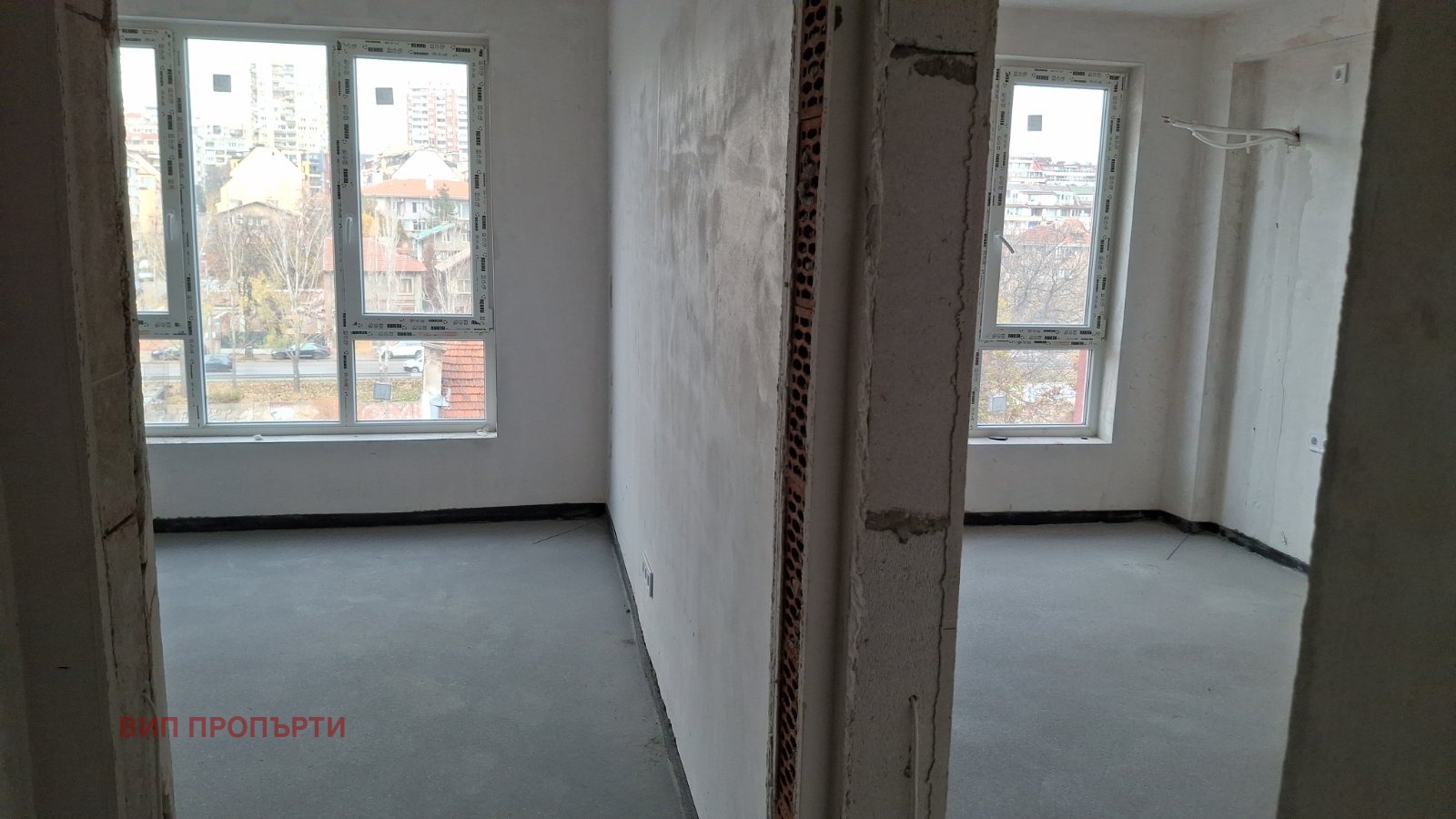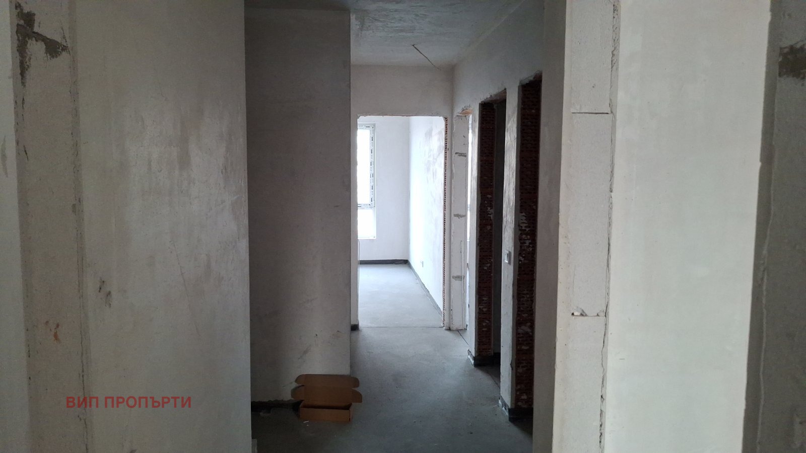 Жилището е на замазка ,шпакловка,ВиК изводи,ел окабеляване /фасунги,контакти,ключове/.Разположението на апартамента се състои от дневна с кухненски кът,2 бр спални,баня с тоалетна,отделна тоалетна,тераса и входна врата.